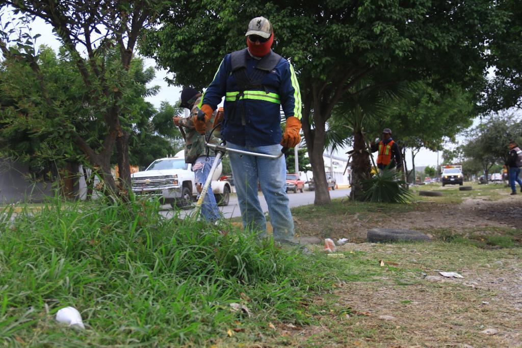 Ciudad Victoria. – Con empeño y dedicación, trabajadores del municipio apoyan con labores de limpieza al Gobierno de Victoria, que encabeza Eduardo Gattás Báez, con el objetivo de restaurar la imagen de áreas verdes y camellones de las distintas avenidas de la ciudad.