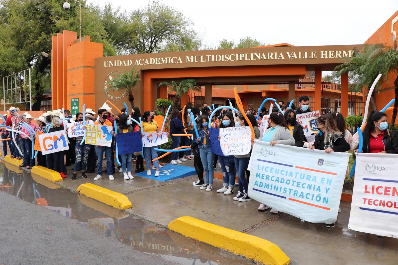 La comunidad universitaria de la UAMVH, por conducto del Mtro. Fernando Villanueva Pineda, Director del plantel, le brindó una entusiasta bienvenida y le reiteró una vez más el respaldo de contribuir en las acciones que estará impulsando su gestión rectoral del período 2022-2025 al frente de la máxima casa de estudios de Tamaulipas.