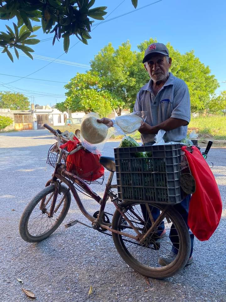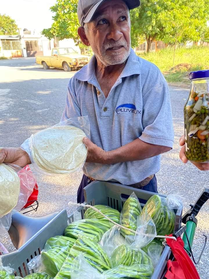 Don Cecilio es una clara muestra de que no hay límite de edad para emprender su pequeño negocio y para muestra, cosecha sus propios productos y él mismo los vende.