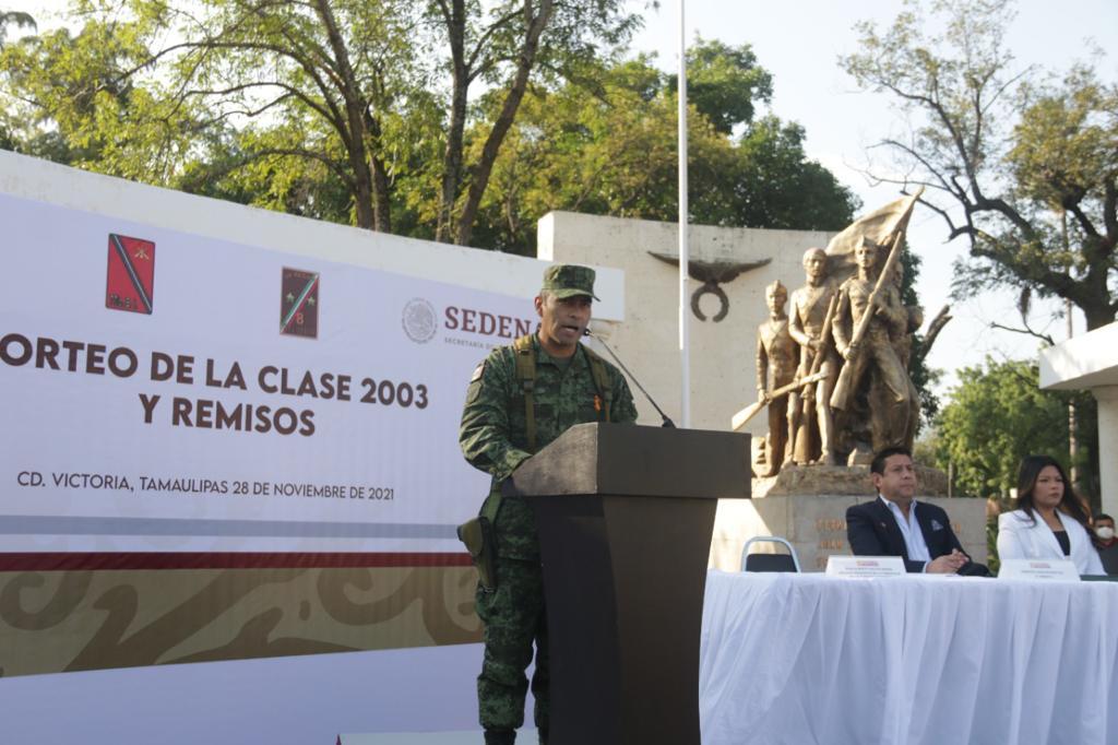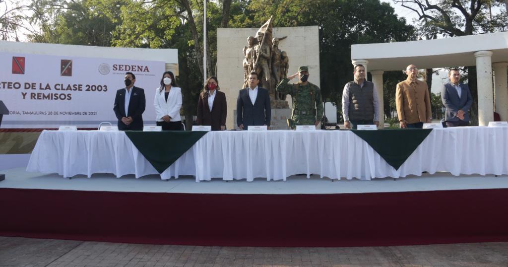 Ciudad Victoria.- Al presidir el Sorteo de Cartilla Militar, Clase 2003 y Remisos, el alcalde de Victoria Eduardo Gattás Báez exhortó a los jóvenes participantes a formarse a través de la instrucción militar en el respeto y servicio a la comunidad.