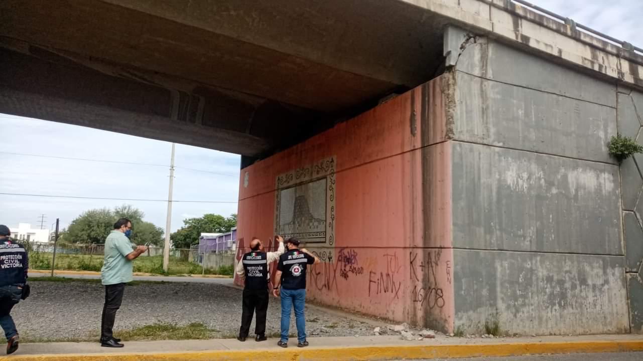 Personal del área de Verificación de Protección Civil Municipal procedió a realizar una inspección en el puente vehicular que se encuentra ubicado sobre el crucero del Eje Vial Lázaro Cárdenas y Bulevar Emilio Portes Gil.