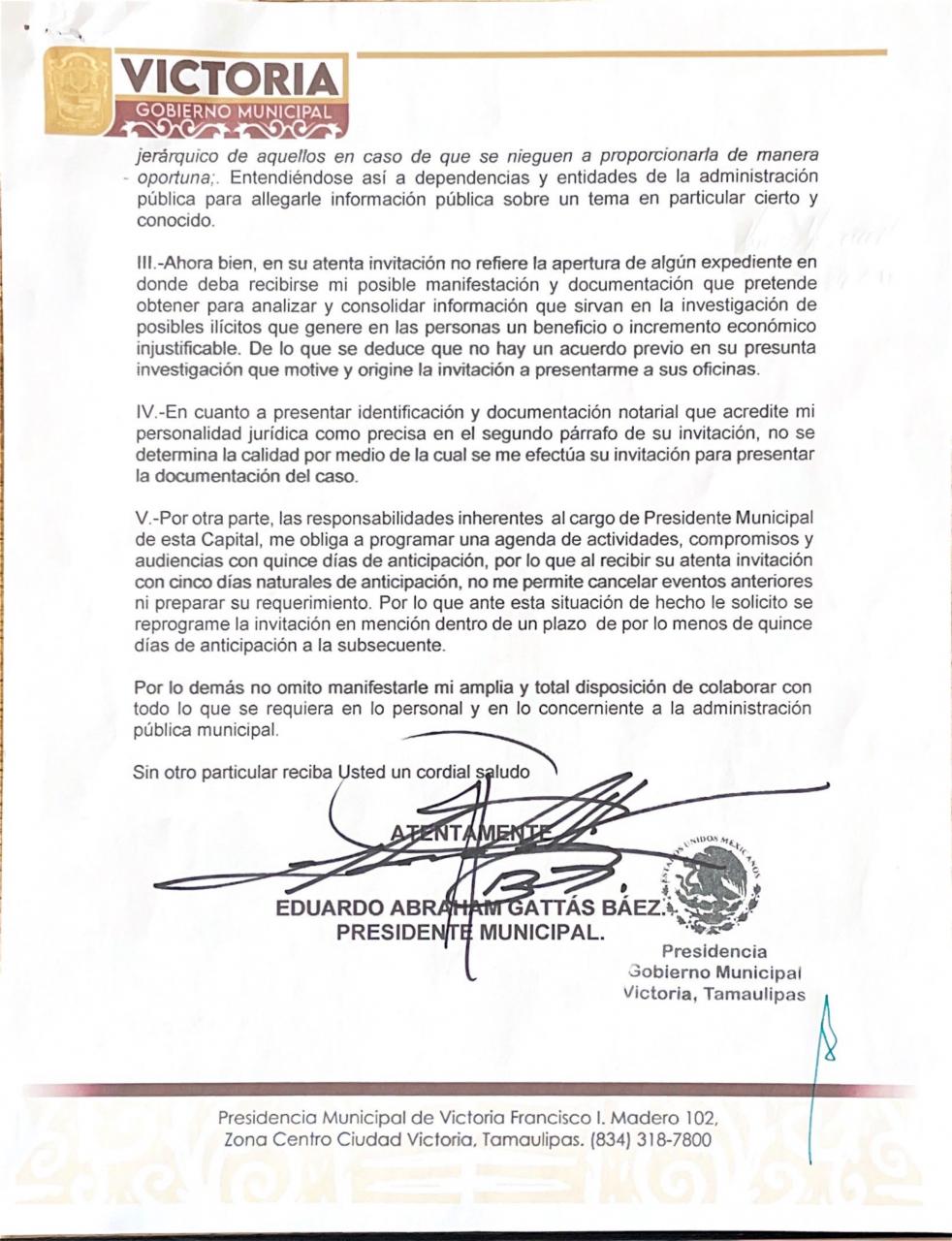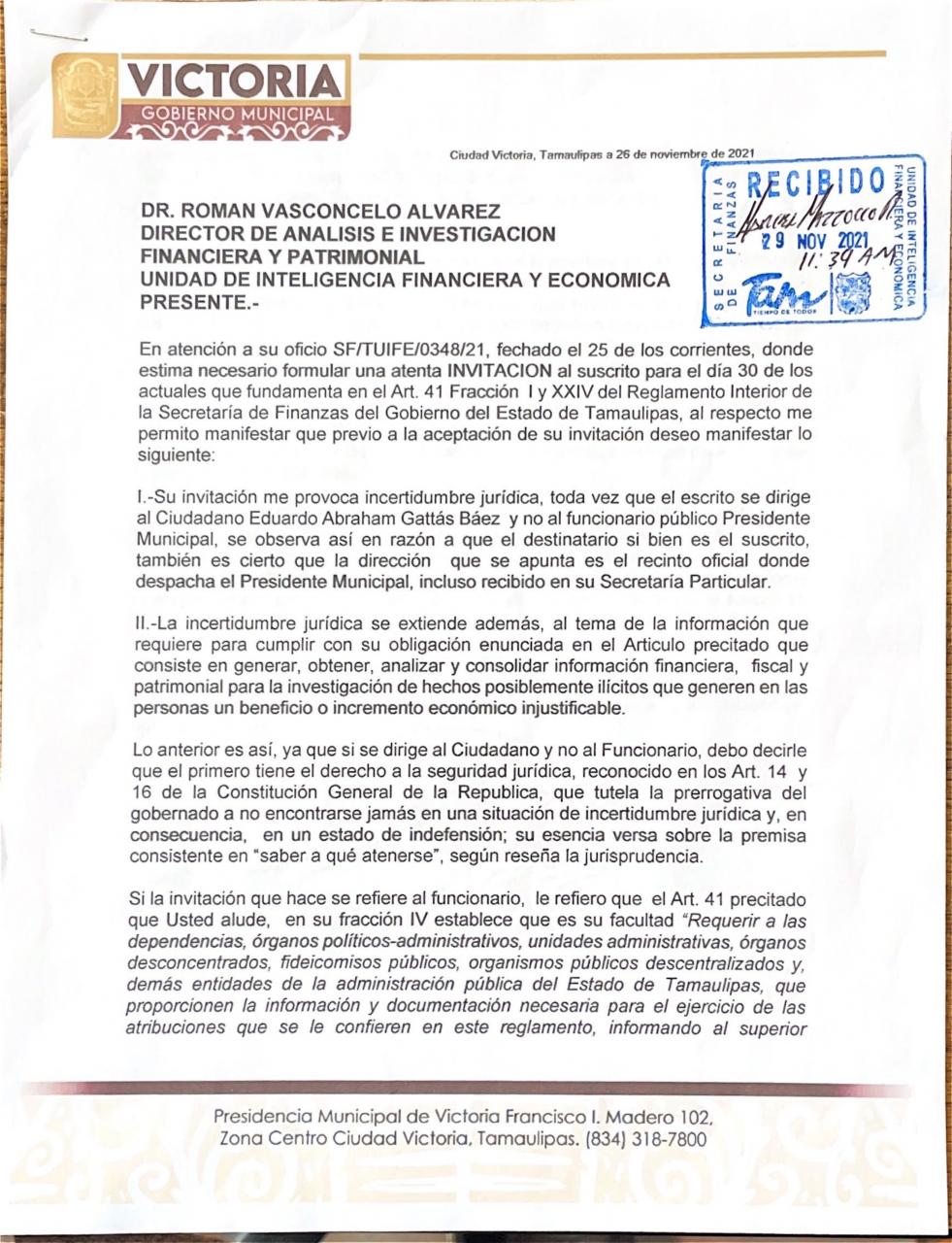 Manifestando mi absoluta disposición en los asuntos que me requiera, he solicitado a la UIF tenga a bien aclararme la invitación rotulada en mi nombre especificando si he sido requerido en mi carácter de ciudadano o como autoridad y que particularice el tema a informar.