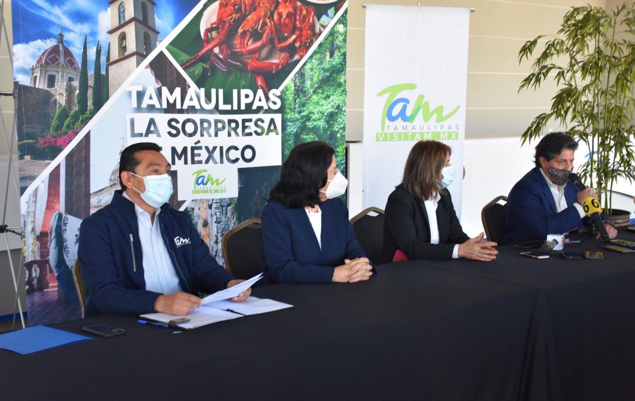 En la presentación de este museo itinerante participaron también Elvia Holguera Altamirano, secretaria de Turismo de Tampico, María del Rosario González Flores, directora de Expo Tampico y Antonio Morales Martínez, director comercial del Tour “Tierra de Dinosaurios”.