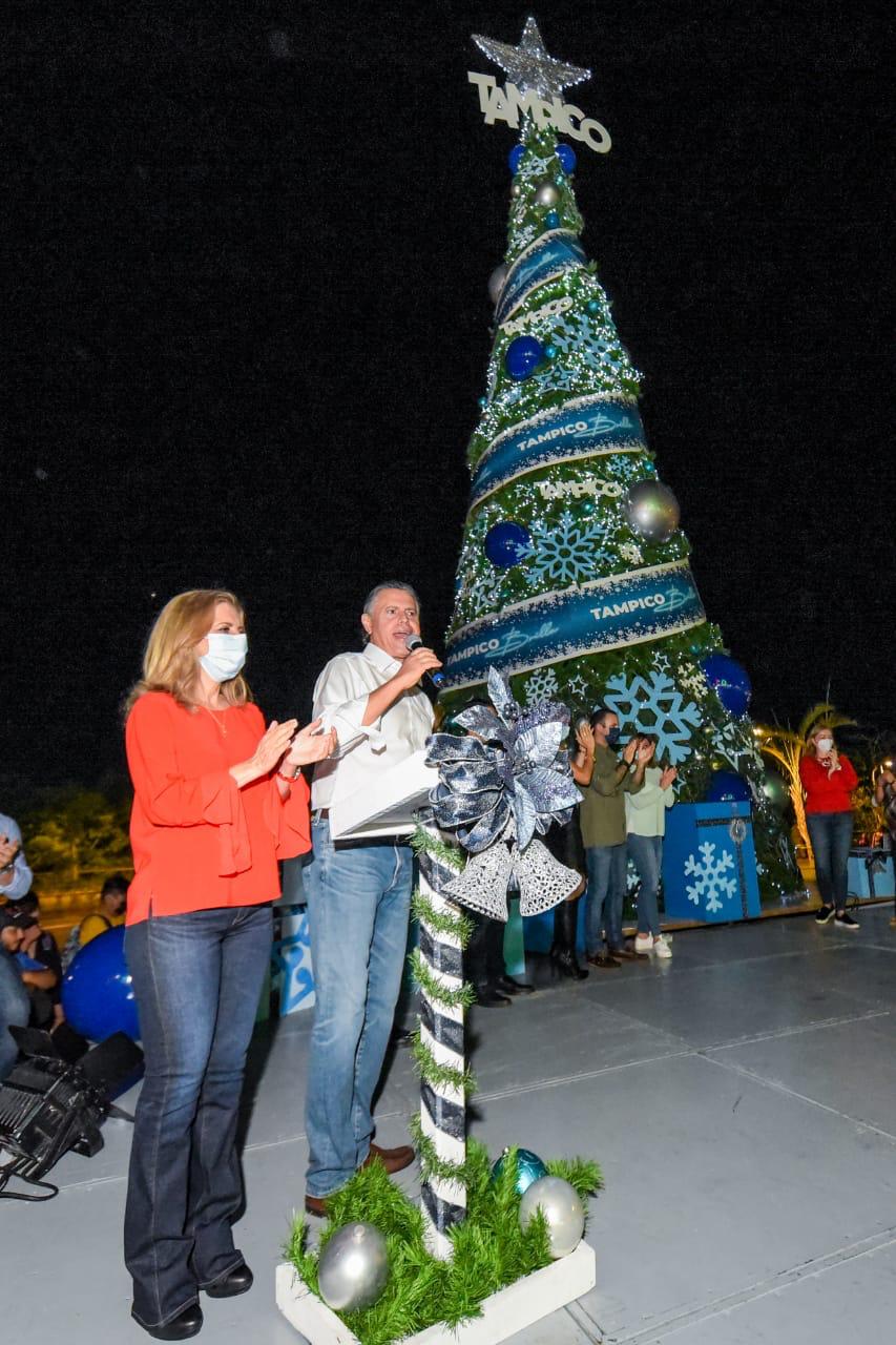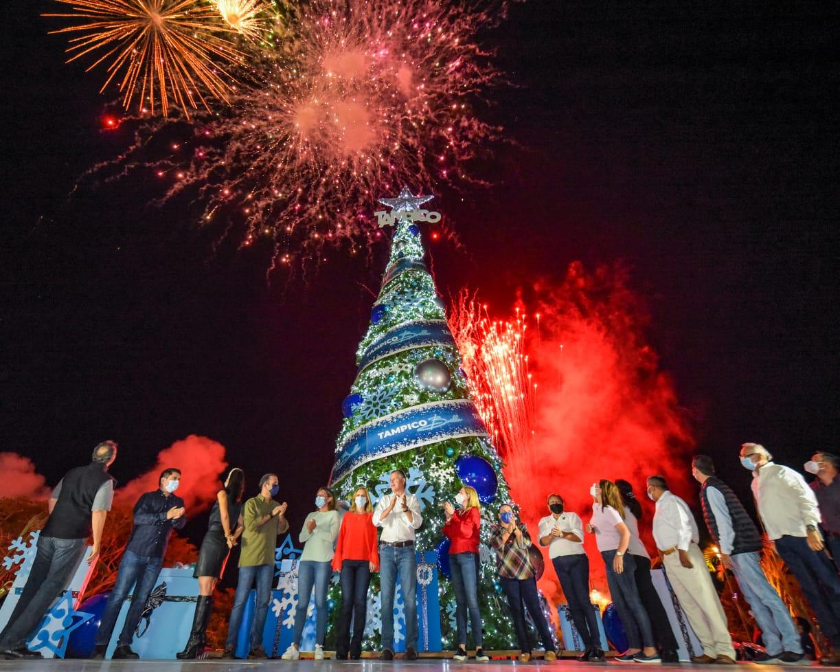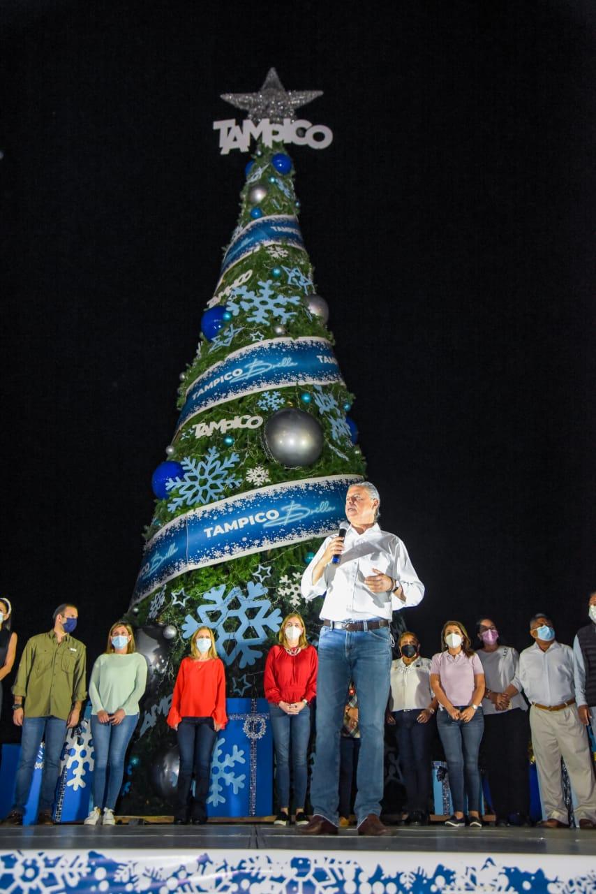 "Hoy encendemos la luz que hará brillar el futuro de Tampico y de Tamaulipas; este monumental pino navideño sintetiza el anhelo de todos los tampiqueños por vivir en una ciudad y en un estado que brinde mayor seguridad, bienestar y desarrollo; por ello seguimos trabajando todos los días, para que el modelo de Tampico se extienda en todo la entidad y juntos hagamos que Tamaulipas Brille", subrayó.