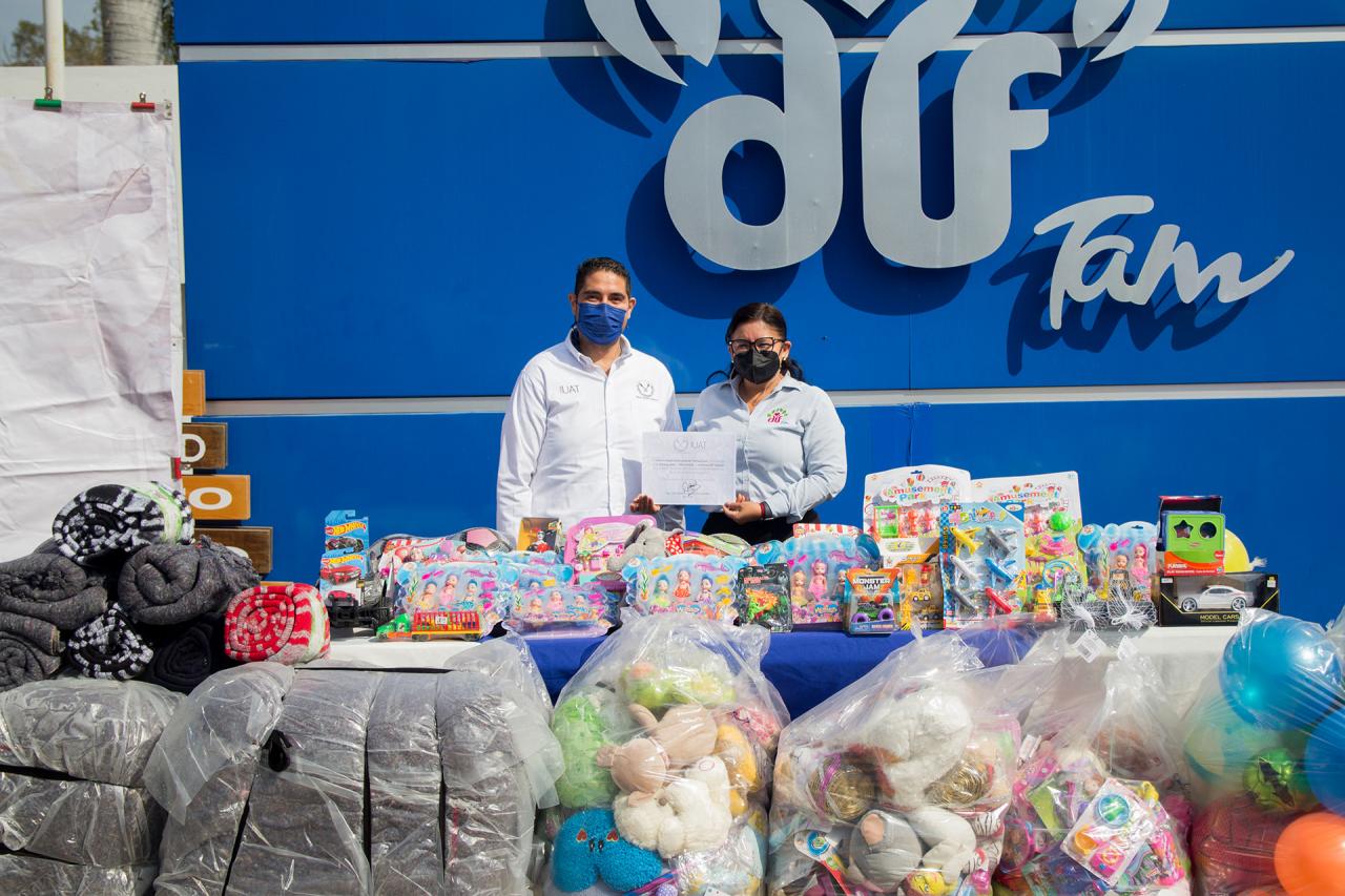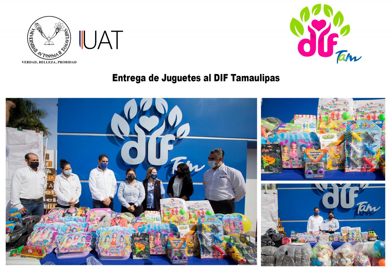La Universidad Autónoma de Tamaulipas (UAT) hizo entrega de 2 mil 600 juguetes al Sistema para el Desarrollo Integral de la Familia (DIF) en Tamaulipas, mismos que serán distribuidos durante estas fechas decembrinas a niñas, niños y adolescentes de los sectores más vulnerables de la sociedad.