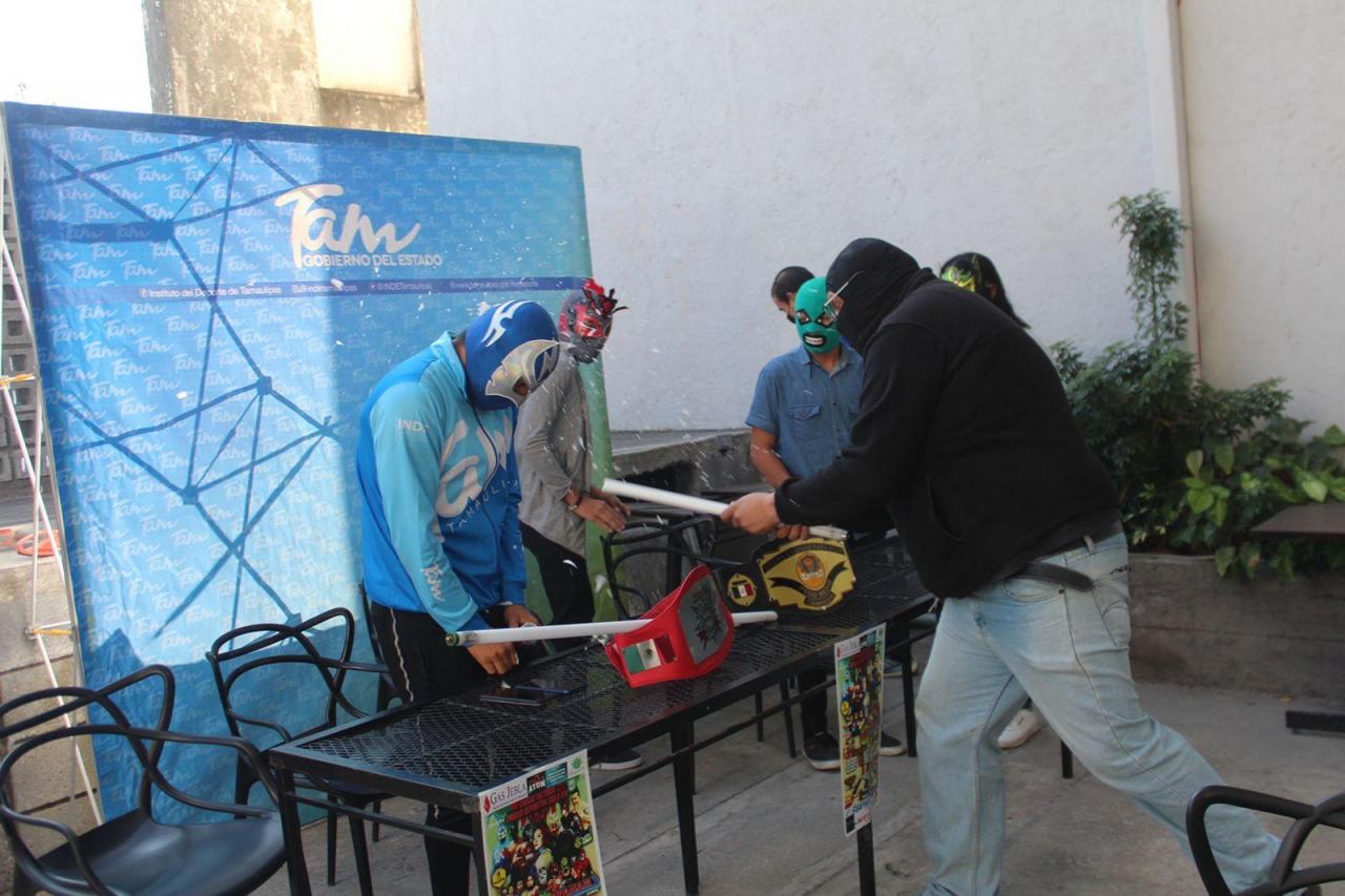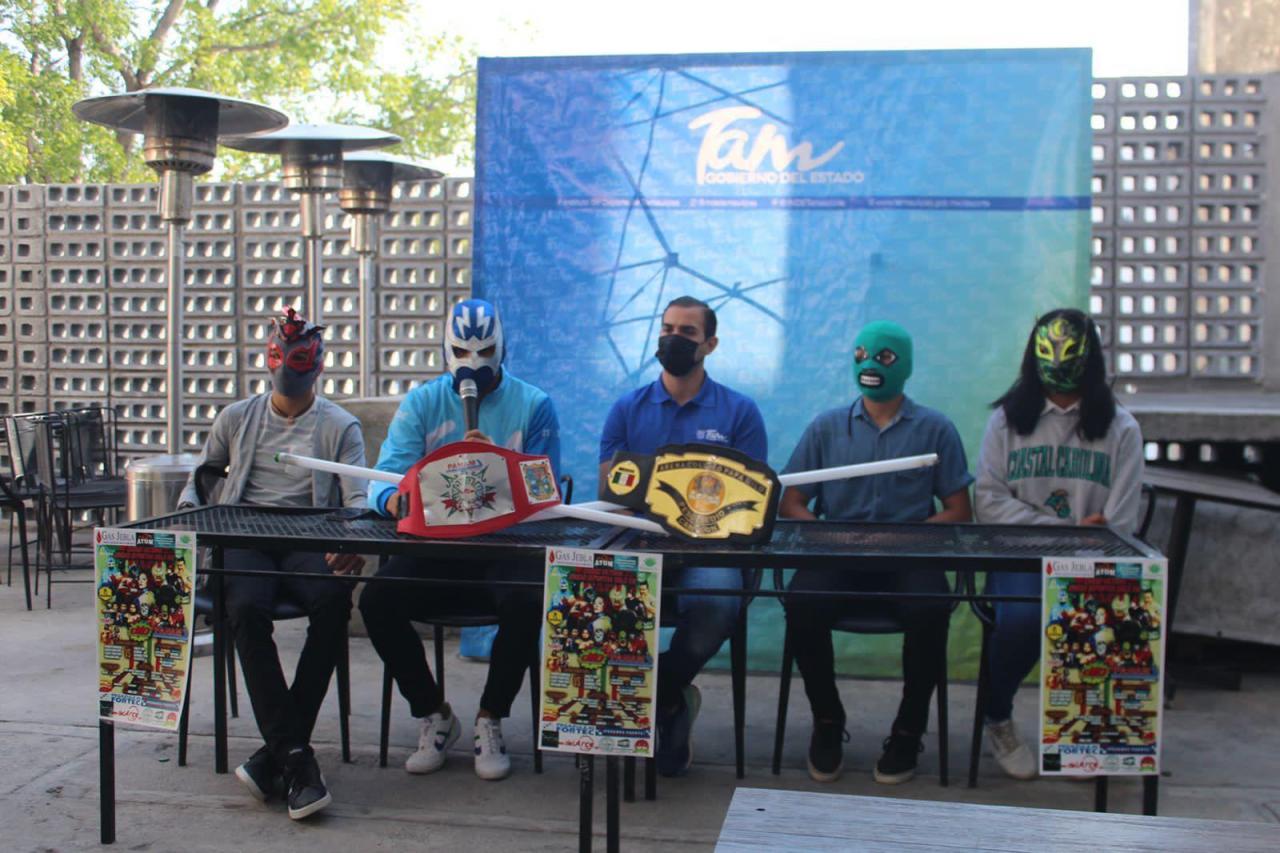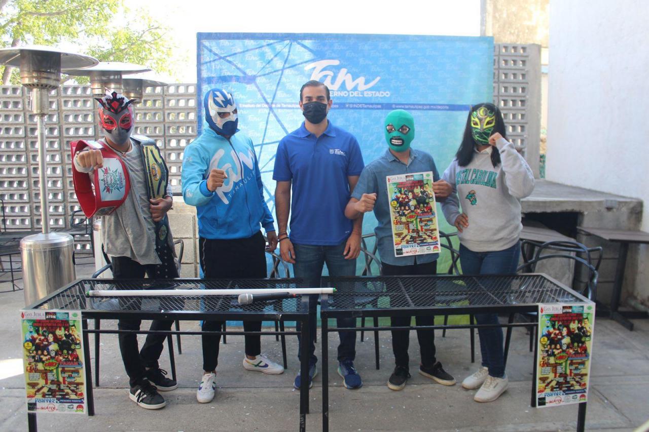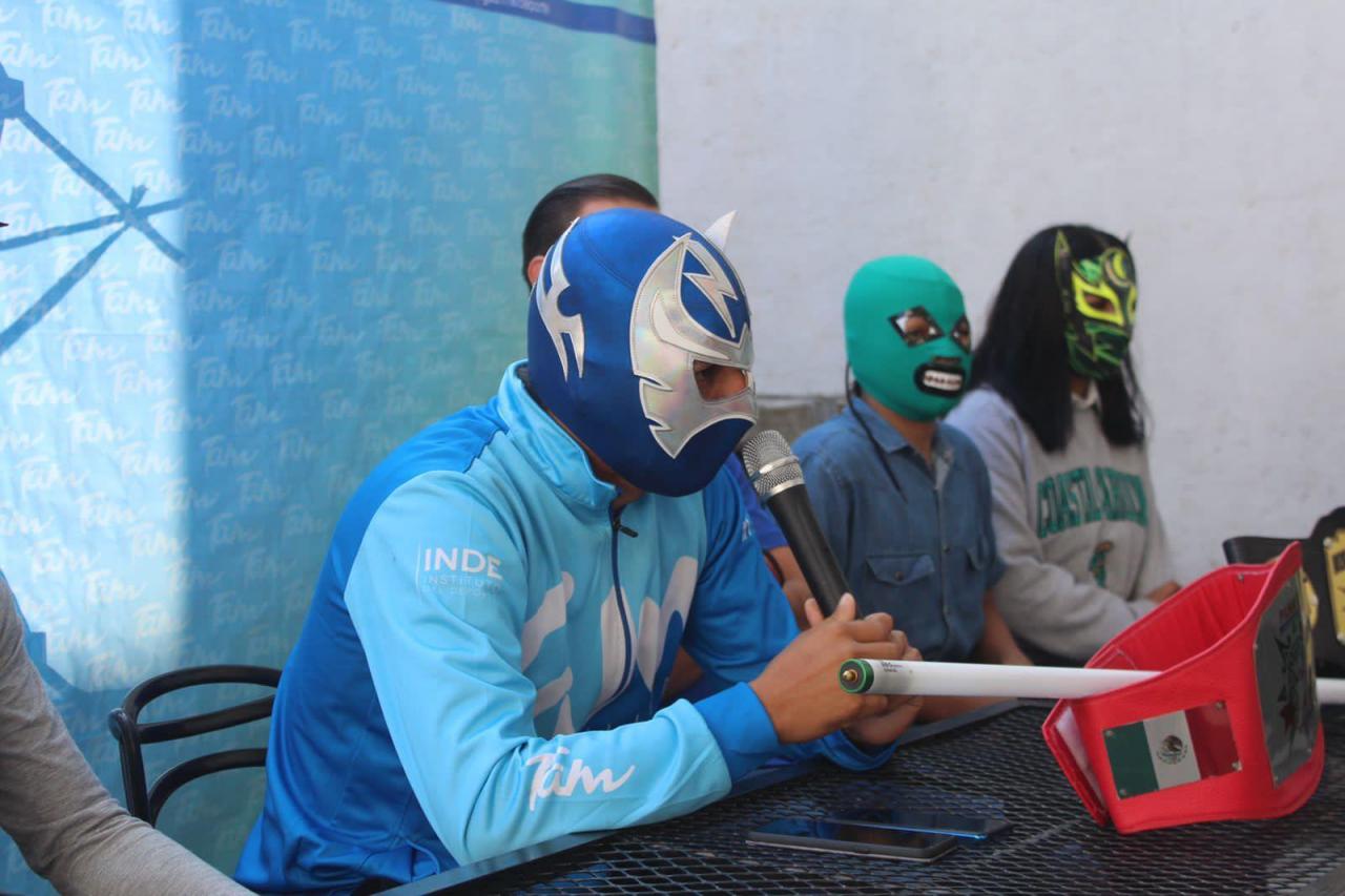Silver Fly, quien es representante local junto a otros luchadores victorenses presentaron la cartelera; además estuvieron acompañados de Orlando Martínez, Director General del Instituto del Deporte.