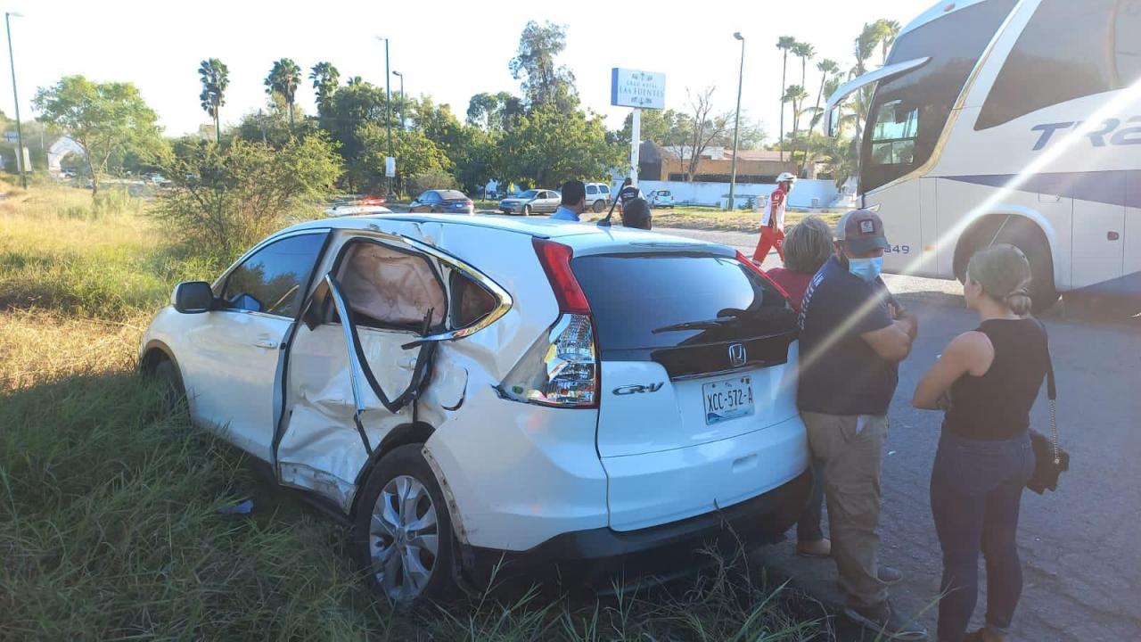 En el accidente registrado en el crucero del Bulevar Fidel Velázquez y Avenida América Española frente al Gran Hotel Las Fuentes se vio involucrado un autobús de la línea Transpaís marcado con el número económico 9359 así como una camioneta marca Honda tipo CRV color blanco.