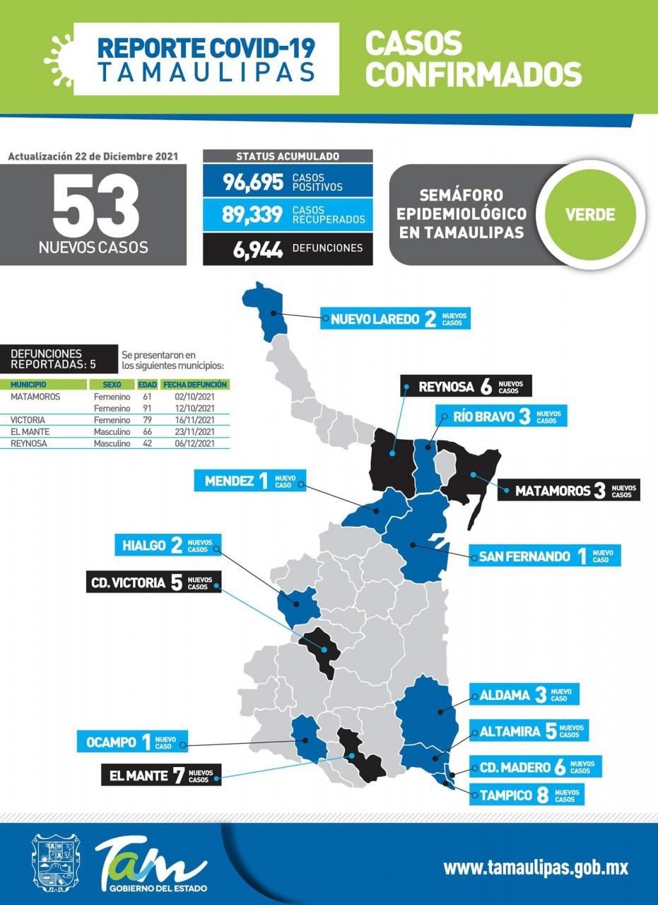 CIUDAD VICTOIRIA, TAMAULIPAS.- La secretaria de Salud de Tamaulipas, Gloria Molina Gamboa, insistió en su llamado a evitar sitios aglomerados, fiestas o reuniones sociales en las que no se respeten las medidas de seguridad sanitaria para evitar un brote de COVID-19 que pueda derivar en una cuarta ola de contagios y que la variante Ómicron pueda convertirse en la predominante.