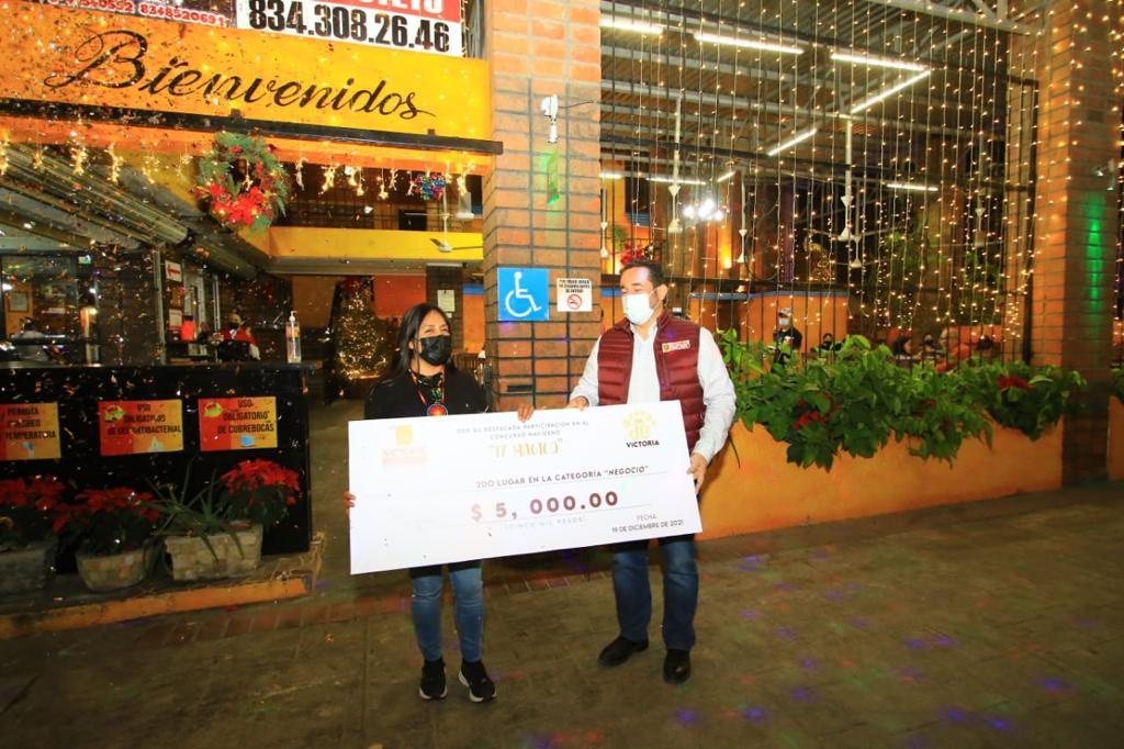 Ciudad Victoria. – Por contribuir en promover y avivar el espíritu navideño entre las familias victorenses, el gobierno de Eduardo Gattás Báez, a través de la Secretaría de Desarrollo Económico, premió y entregó reconocimiento a participantes y ganadores del concurso navideño “17 Mágico”.