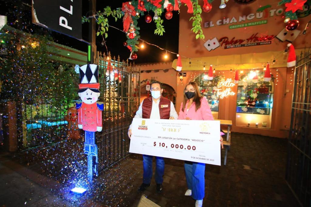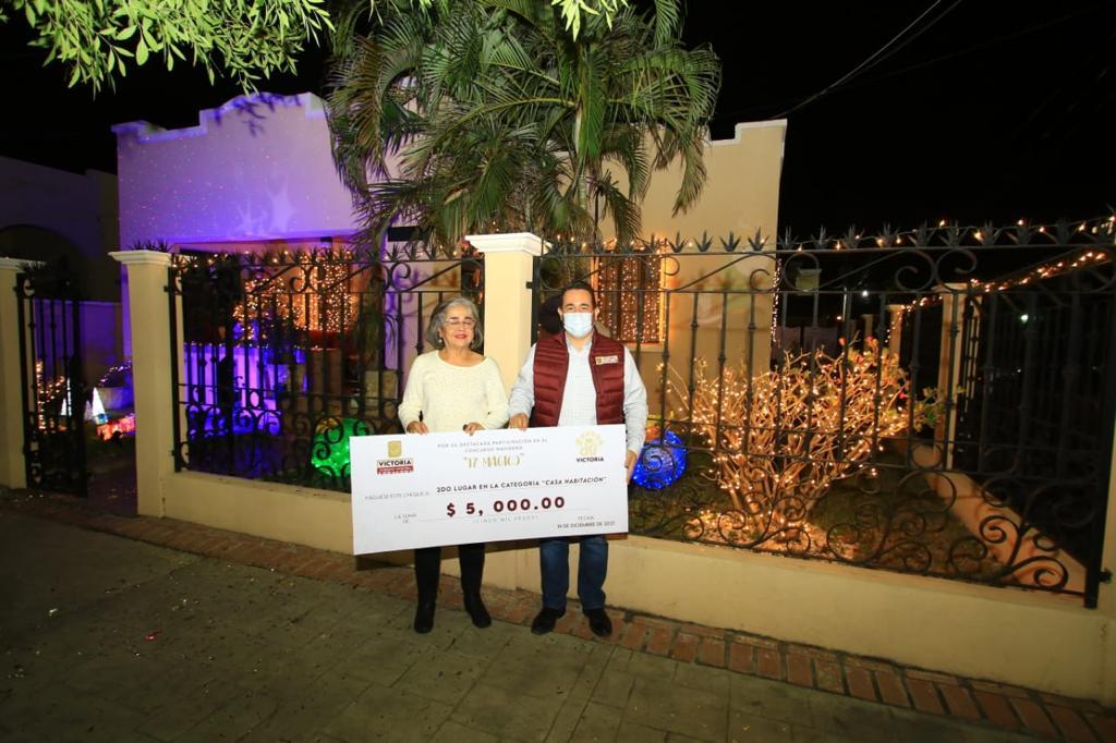 En la categoría de mejor adorno navideño de Casa Habitación se premió a María de Lourdes Cano Pérez mientras que en la de Negocio se otorgó el primer lugar a El Changito Crepas y Waffles, los cuales obtuvieron la mayor votación a través de la dinámica en redes sociales.