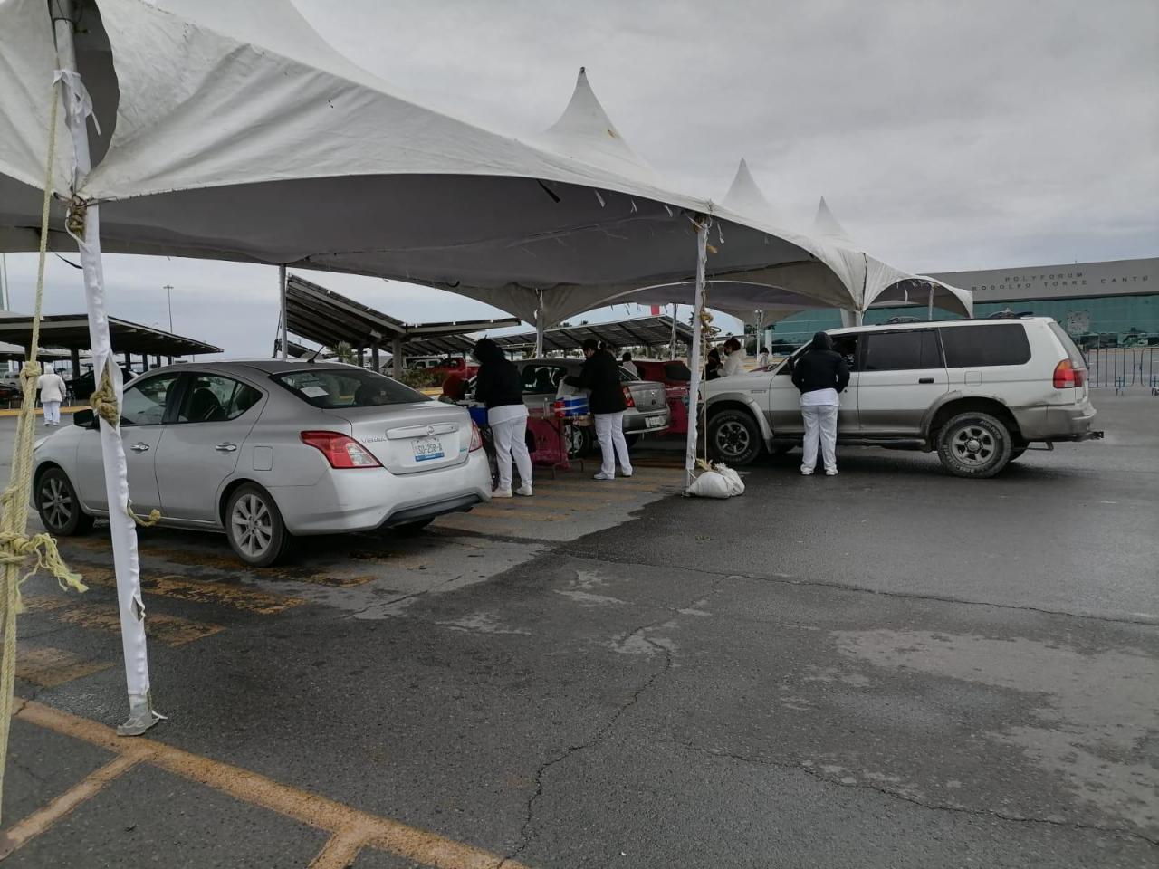 Pese a las bajas temperaturas, para la aplicación del biológico del laboratorio Astra Zeneca tanto en el sede del Patinadero del 16 Carrera Torres así como en la modalidad Drive Thru en el Polyforum Rodolfo Torre Cantú del Parque Bicentenario desde temprana hora empezaron a formarse largas filas.