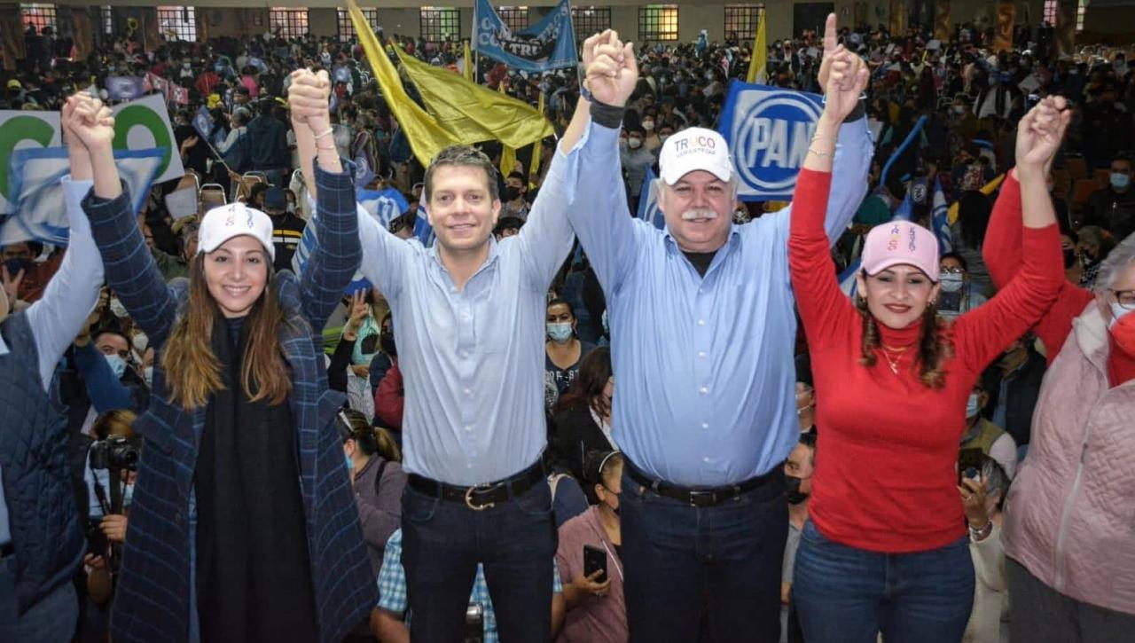 Reynosa.- Este martes, en un encuentro multitudinario en el que convergieron militancia y simpatizantes de los partidos Revolucionario Institucional, Acción Nacional y de la Revolución Democrática, en una sola voz refrendaron ante el candidato de la alianza Va por Tamaulipas, César Verástegui Ostos su compromiso de respaldar el ideal de hacer de Tamaulipas un mejor lugar para vivir.