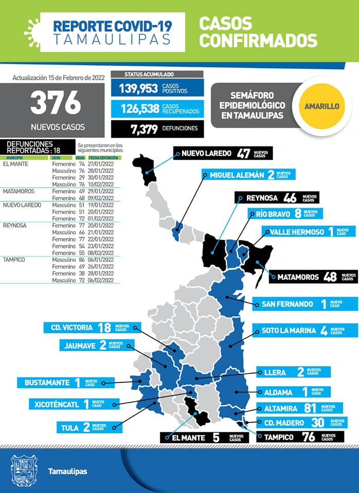 Al presentar el reporte diario sobre el avance de la pandemia, la dependencia confirmó 376 positivos y 18 defunciones al cierre de la jornada de este martes, casos que reflejan un descenso gradual de la cuarta ola de contagios.