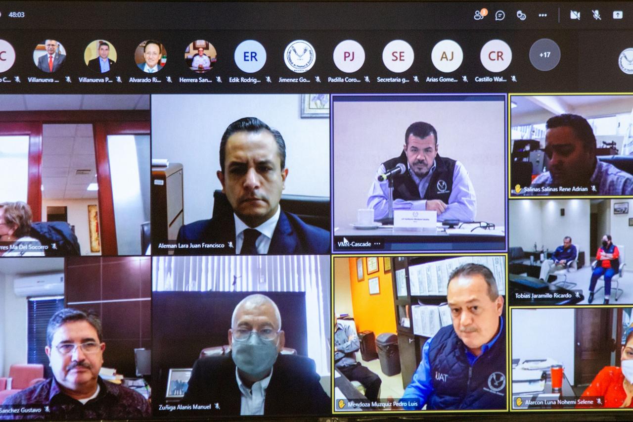 Durante la sesión, correspondió a la Dra. Cinthya Patricia Ibarra González, secretaria de Gestión Escolar y representante de la UAT ante el Comité Estatal de Seguridad en Salud en Tamaulipas, exponer las generalidades del comunicado emitido esta semana por las secretarías de Educación y de Salud del Gobierno del Estado, que exhorta al nivel superior y medio superior al retorno a clases presenciales.