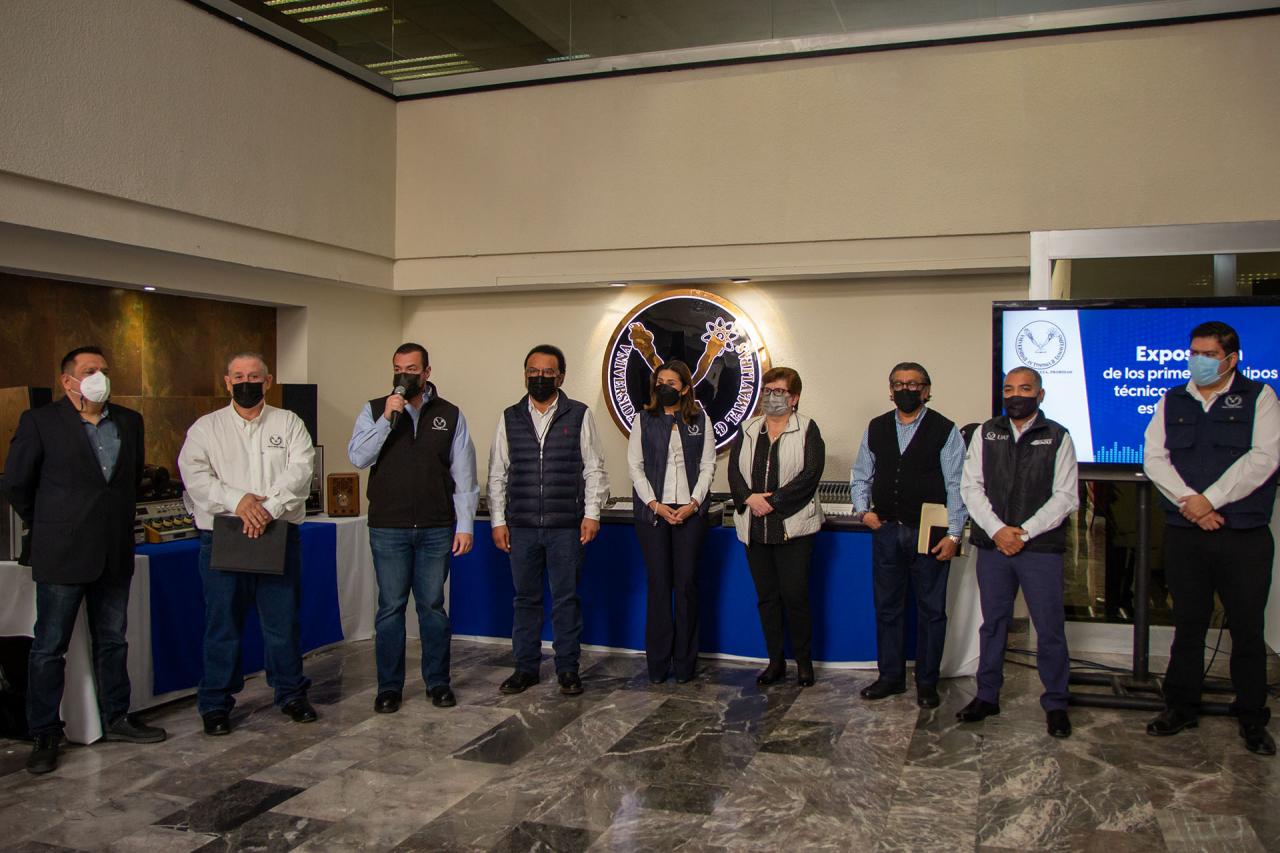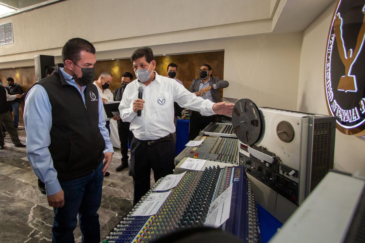 Como parte de esta ceremonia de aniversario, el Rector Guillermo Mendoza Cavazos inauguró una exposición de los equipos técnicos pioneros de esta estación universitaria, conformada por piezas como reproductoras de cartuchos de ocho pistas, equipos de enlace por línea telefónica, consolas mezcladoras, aparatos de radio, tornamesas, procesadores, reproductores de casetes y discos compactos, entre otras piezas.