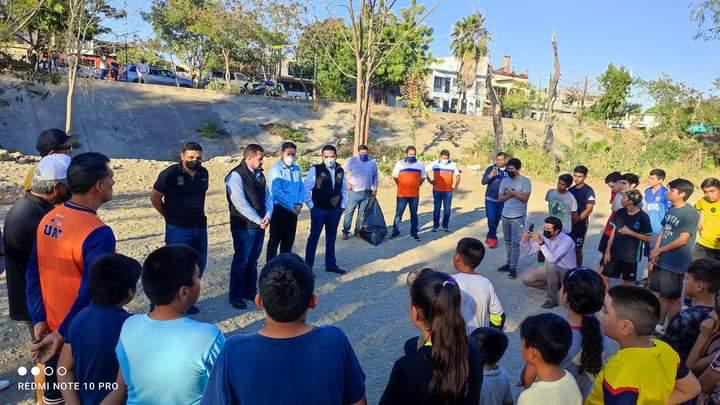 Rebasando las barreras que a veces se ponen algunos funcionarios, el Rector de la Universidad Autónoma de Tamaulipas, Guillermo Mendoza se trasladó hasta el lugar donde entrenan los niños del Puente Negro.