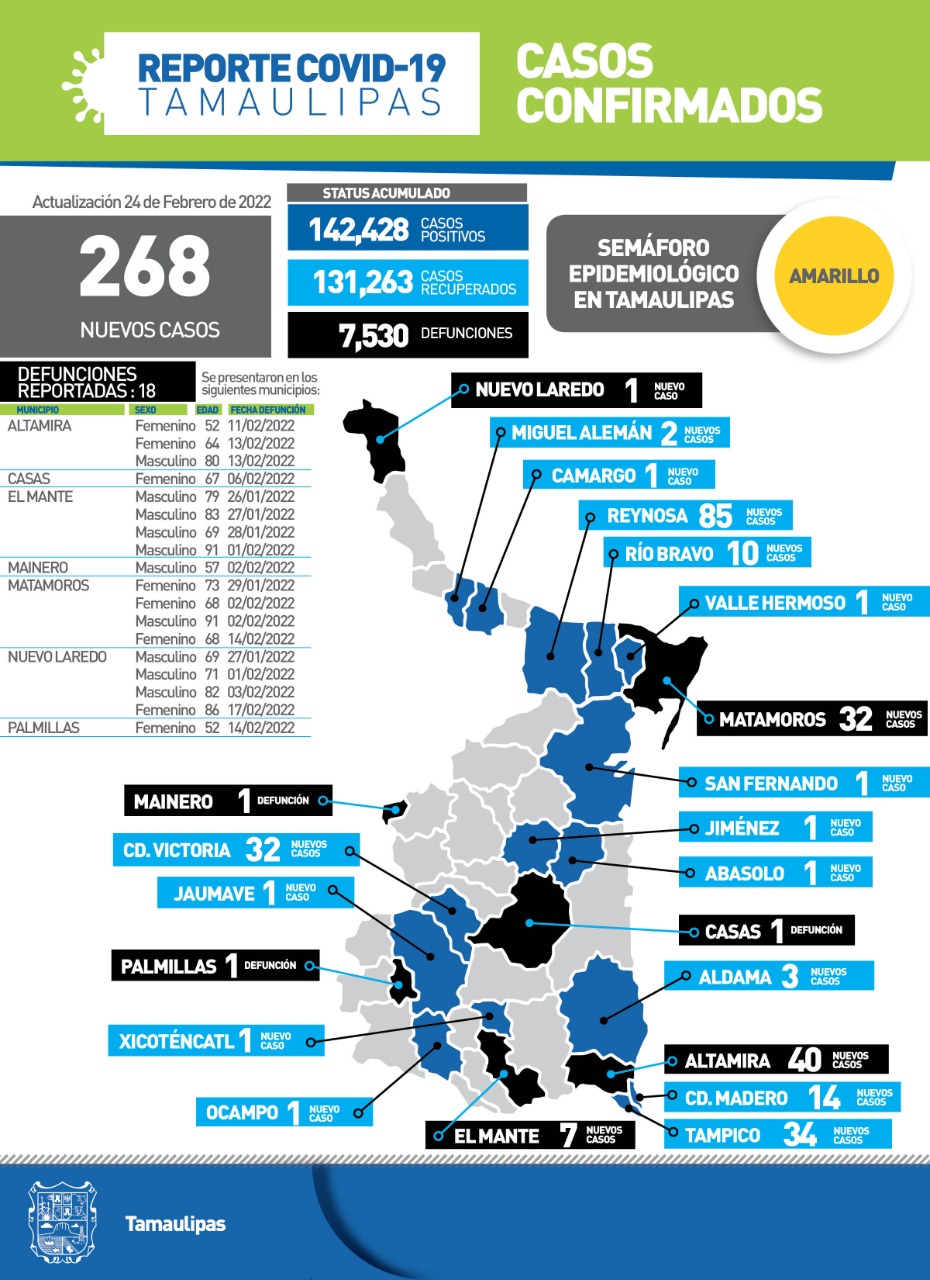 Al presentar el balance oficial de la pandemia, la SST confirmó 268 nuevos casos y 18 fallecimientos, por lo que insistió en vacunarse contra COVID-19, lavarse las manos frecuentemente de 10 a 20 veces al día, distancia mínima de 2 metros con otras personas y utilizar siempre el cubrebocas correctamente ajustado hasta el puente de la nariz y por debajo de la barbilla.