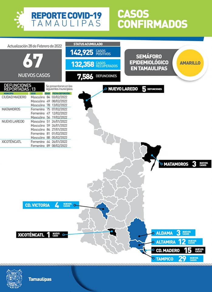 Para continuar con la tendencia descendente en el número de casos de COVID-19, la Secretaría de Salud de Tamaulipas pidió a la población reforzar las medidas de prevención universales y no bajar la guardia ya que la emergencia sanitaria continúa activa.