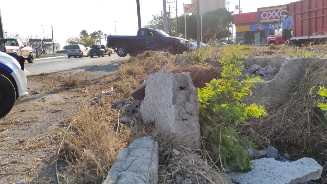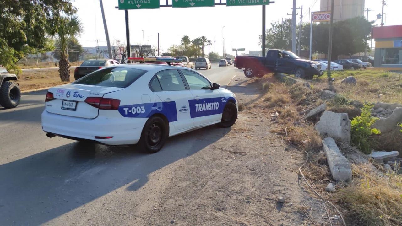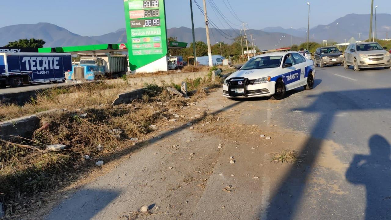 A la altura precisamente de la estación de servicio y a unos metros del entronque con la carretera a Monterrey o Bulevar Tamaulipas, el conductor de la camioneta Dakota perdió el control y desvió su trayectoria hacia su lado derecho.