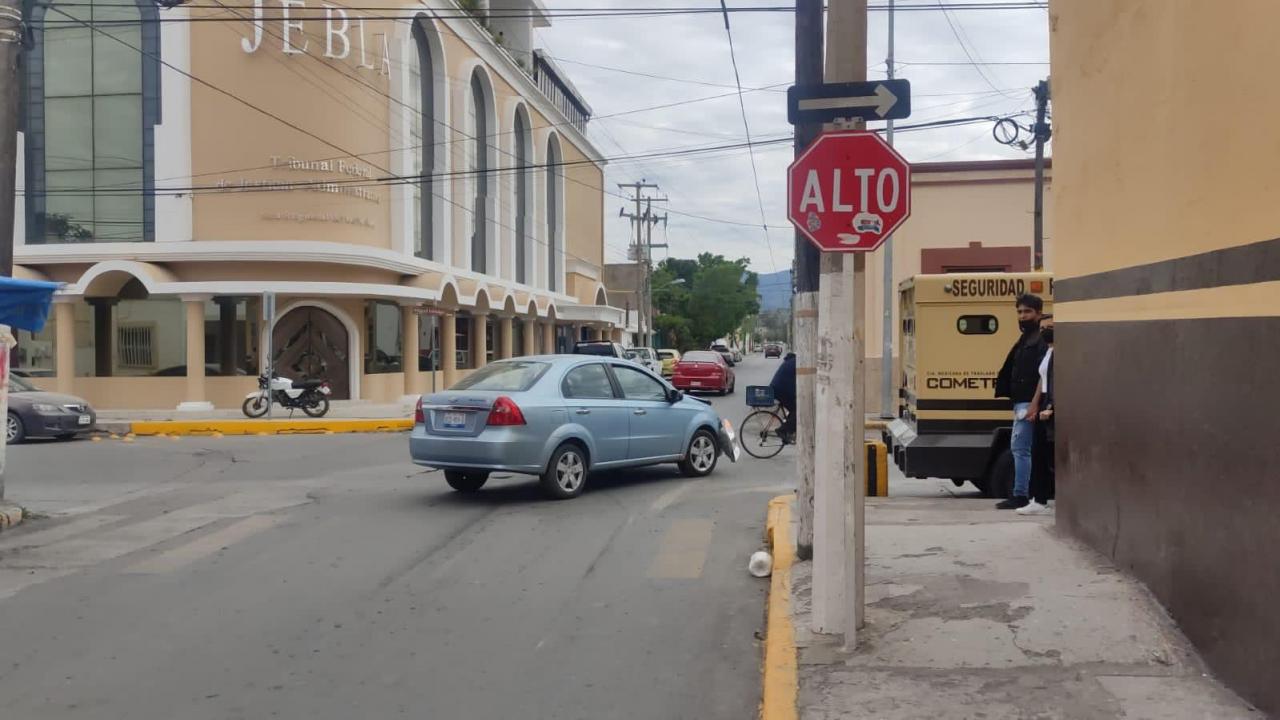 Al llegar al crucero con la calle Hidalgo la mujer ignoró un disco metálico de alto y se impactó contra el costado de un automóvil marca Dodge tipo Attitude.