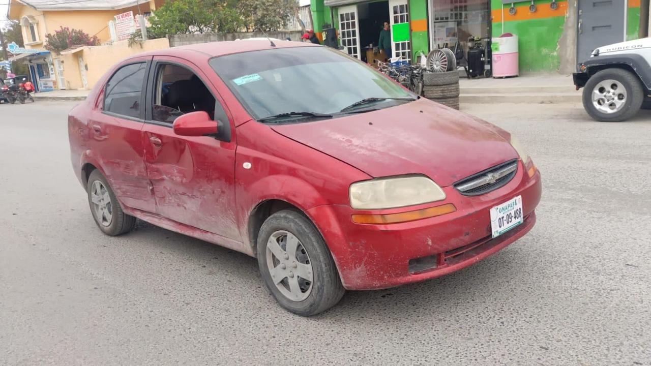 El accidente ocurrió cuando la mujer a bordo de un automóvil de la marca Suzuki tipo Swift salía del estacionamiento de una farmacia ubicada en la Colonia Héroe de Nacozari para incorporarse a la circulación vehicular de la calle 27.