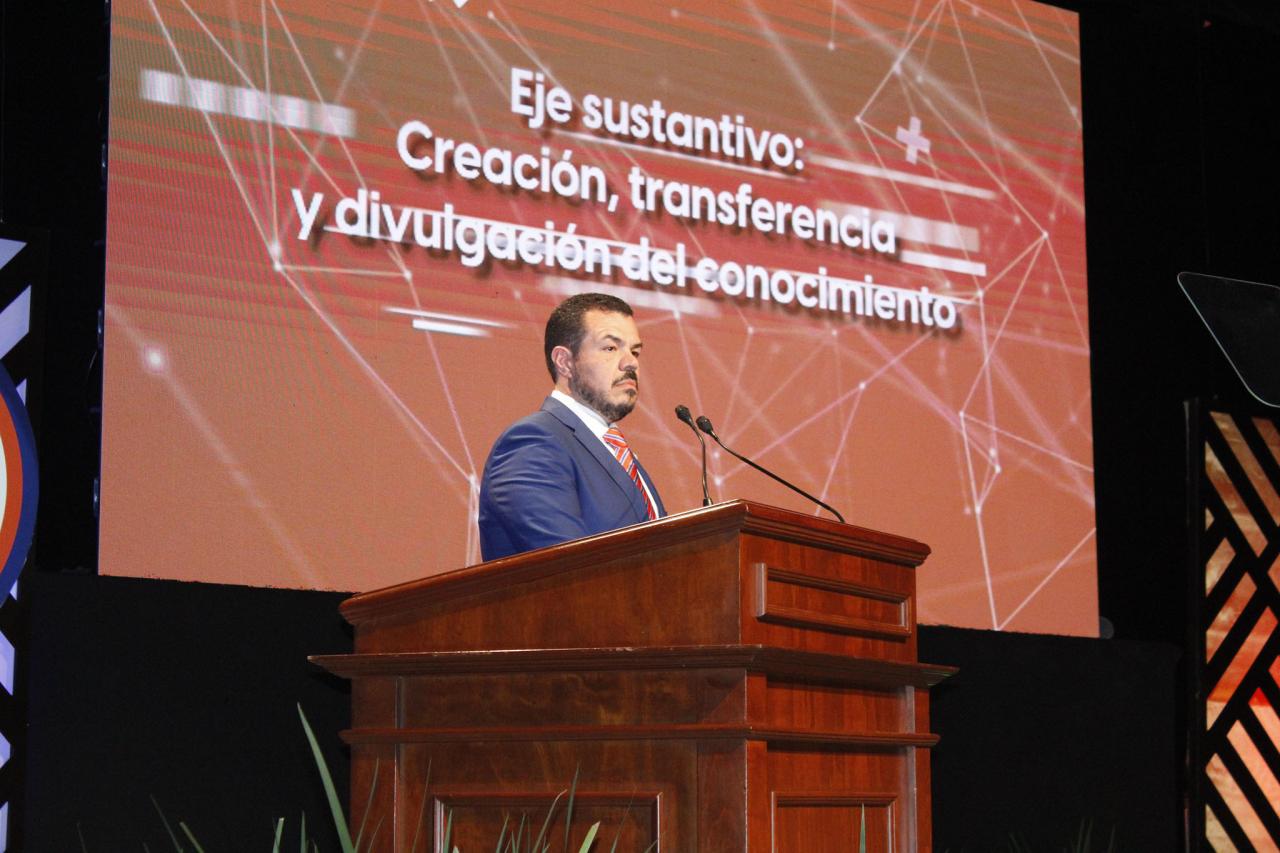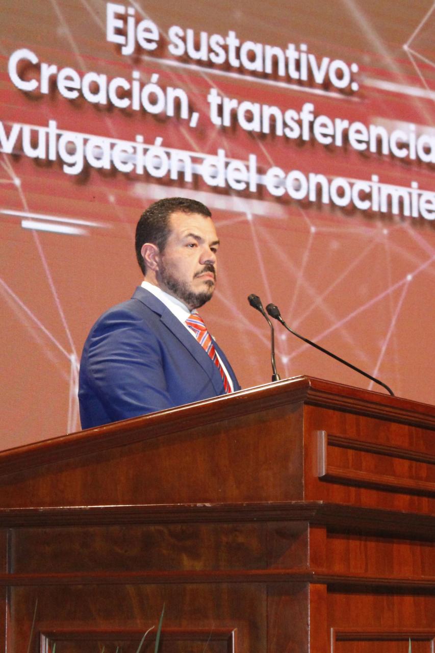 El Rector Guillermo Mendoza Cavazos detalló los ejes sustantivos en materia de formación integral del estudiante; docencia e innovación académica; creación, transferencia y divulgación del conocimiento, y trascendencia social a través de la gobernanza, frugalidad y transparencia.