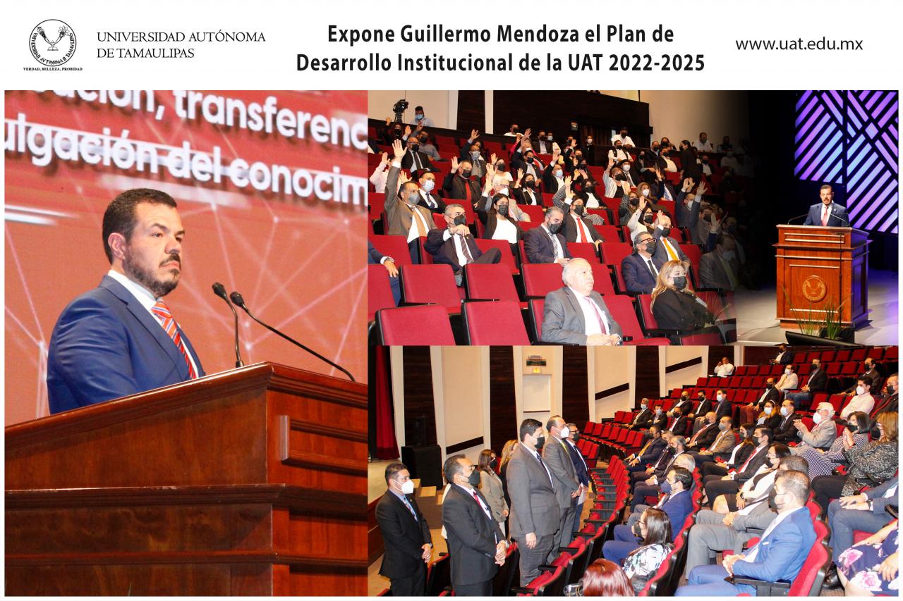 El C. P. Guillermo Mendoza Cavazos expuso el Plan de Desarrollo Institucional (PDI), en el que presenta los objetivos que enmarcan su proyecto de gestión al frente de la Universidad Autónoma de Tamaulipas (UAT) durante el período 2022-2025.