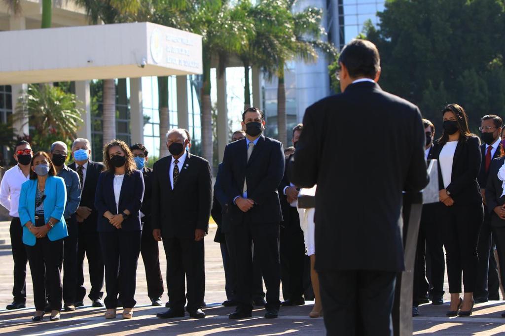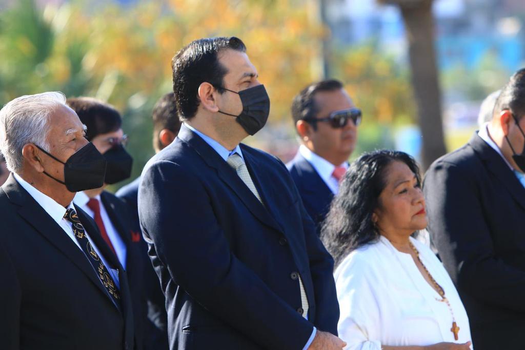 En representación del alcalde Eduardo Gattás Báez, asistió el secretario del Ayuntamiento Hugo Reséndez Silva, síndicos y regidores del Cabildo, a la ceremonia cívica celebrada en el hemiciclo de ubicado en el Supremo Tribunal de Justicia.