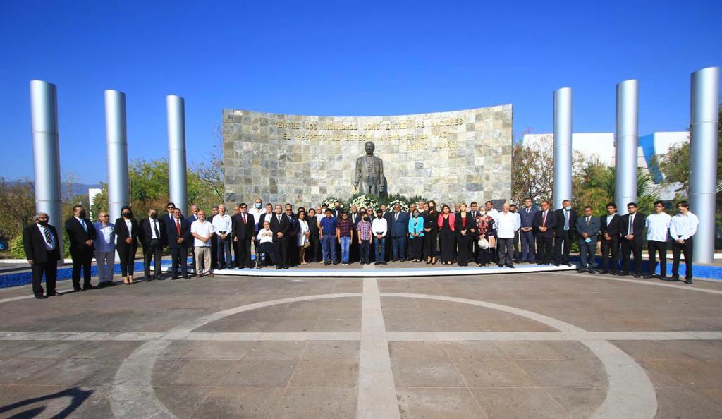 En el acto, se contó con la participación de jóvenes ganadores del Concurso Estatal de Oratoria “Sentimiento Juarista” quienes recitaron discursos alusivos al legado del Benemérito de las Américas sobre su visión de Estado y compromiso con la legalidad y el derecho.