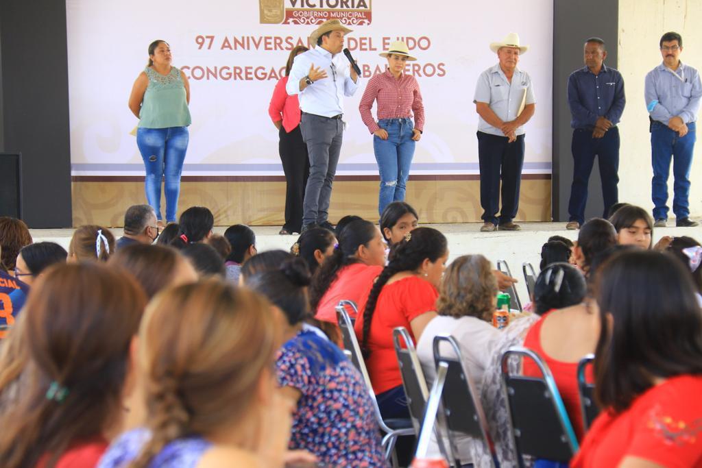 Cd. Victoria. – El alcalde de Victoria Eduardo Gattás Báez, acompañado de su esposa Lucy Rodríguez, asistió como invitado al festejo del 97 Aniversario de la fundación del ejido Congregación Caballeros donde convivió con familias de esa comunidad rural.