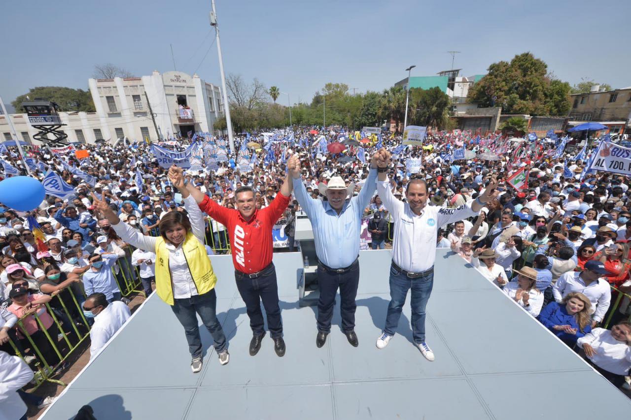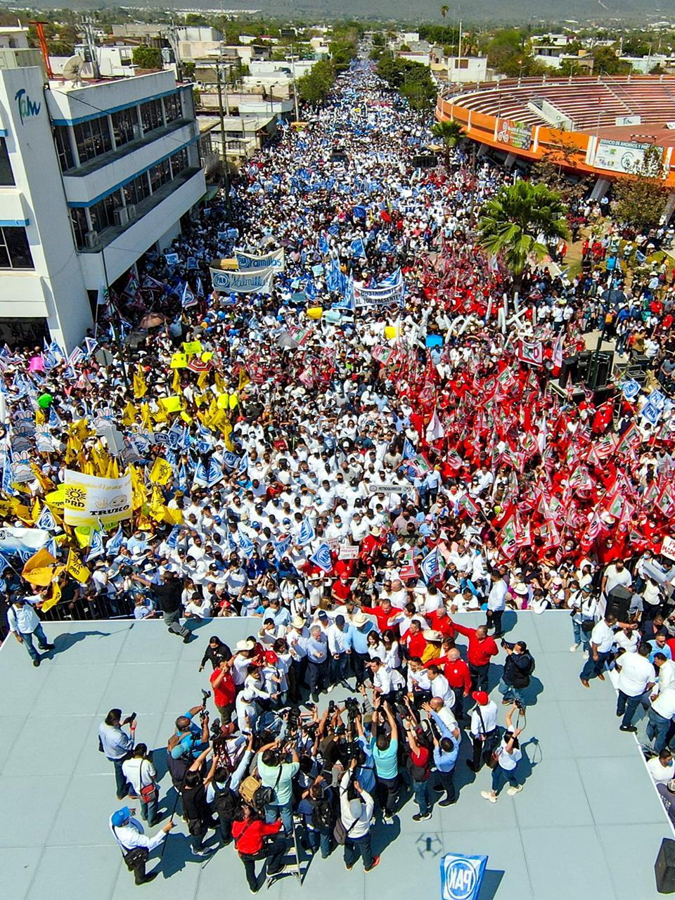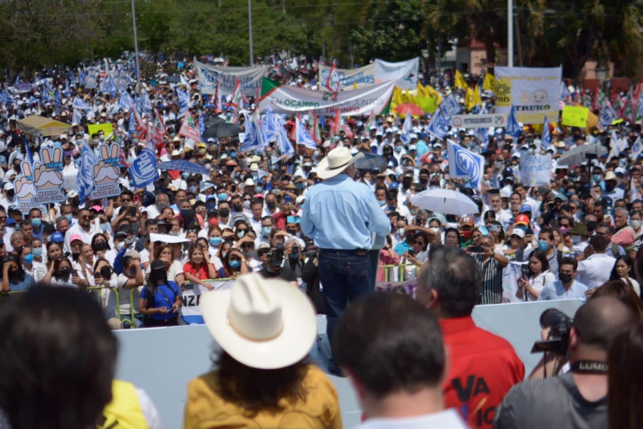 Tras una rueda de prensa realizada en las instalaciones del Partido Acción Nacional en la que participaron las dirigencias nacionales de los partidos que integran la coalición y senadores, diputados federales y figuras nacionales de estos partidos que acompañaron a César Truko Verástegui se dispuso la mega caminata que culminó con una gran concentración donde se firmó el registro que se llevó a las instalaciones del IETAM