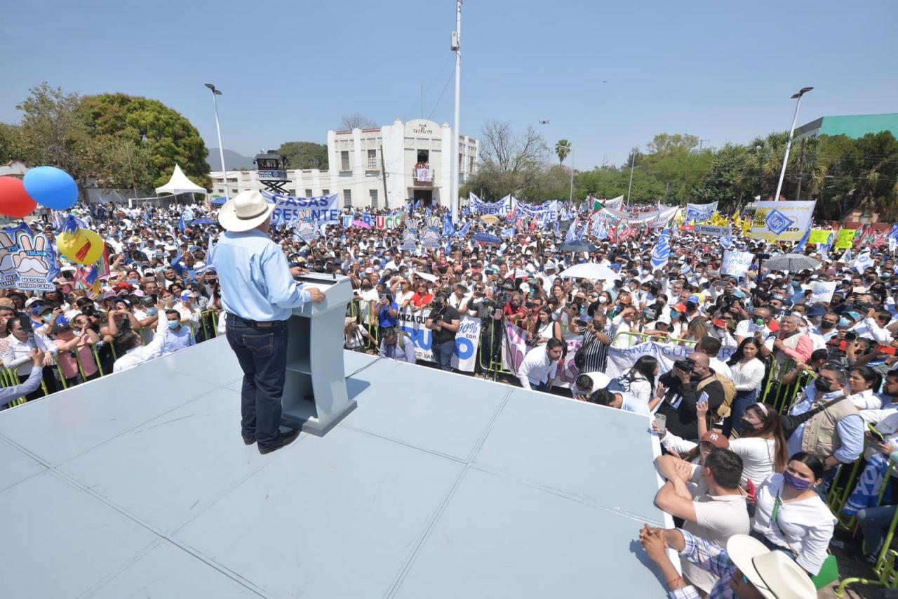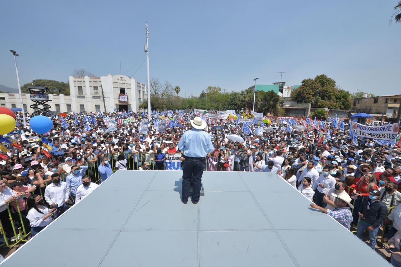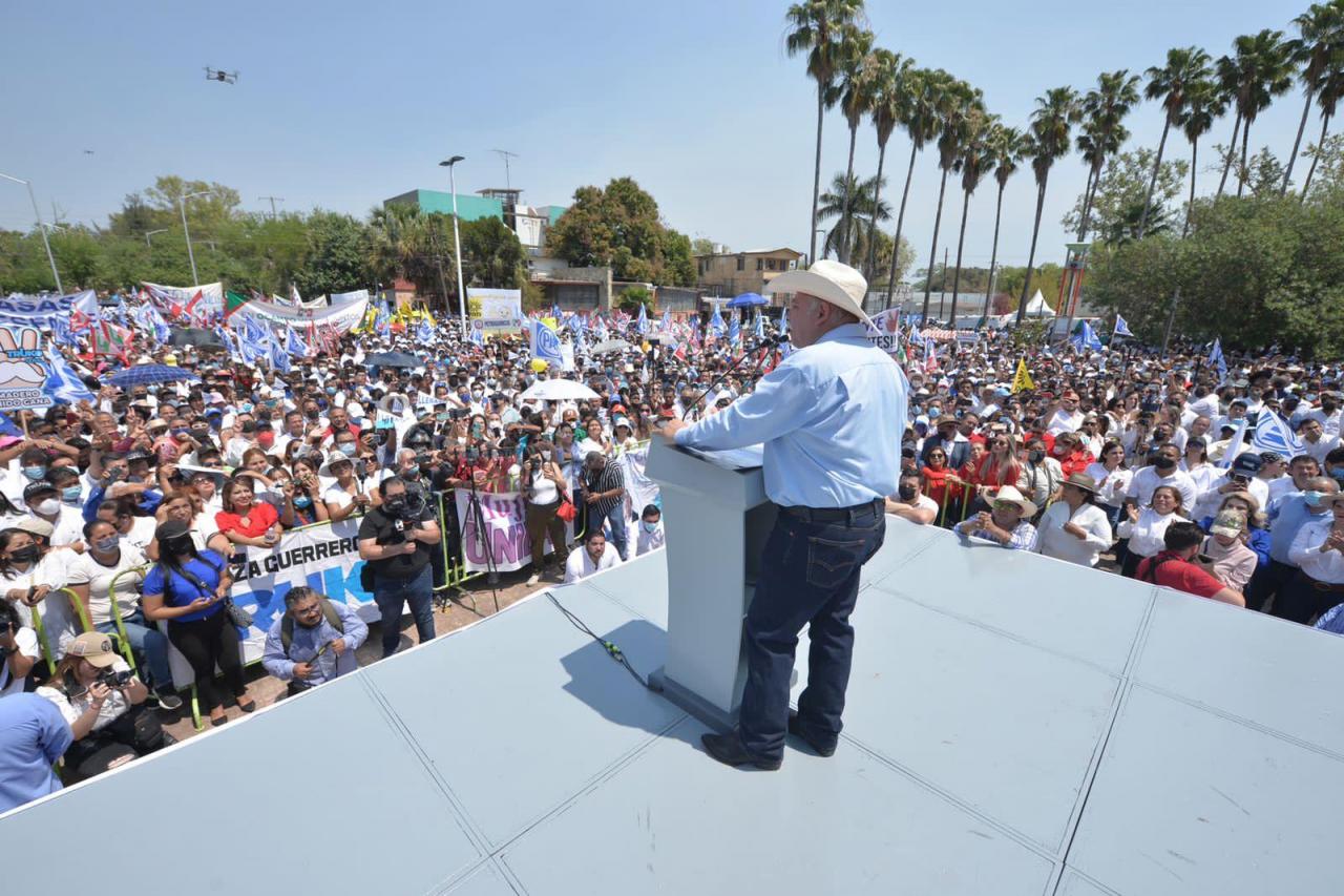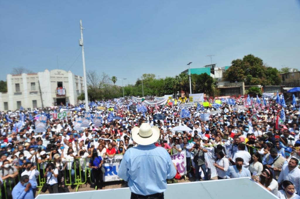 Tras una rueda de prensa realizada en las instalaciones del Partido Acción Nacional en la que participaron las dirigencias nacionales de los partidos que integran la coalición y senadores, diputados federales y figuras nacionales de estos partidos que acompañaron a César Truko Verástegui se dispuso la mega caminata que culminó con una gran concentración donde se firmó el registro que se llevó a las instalaciones del IETAM