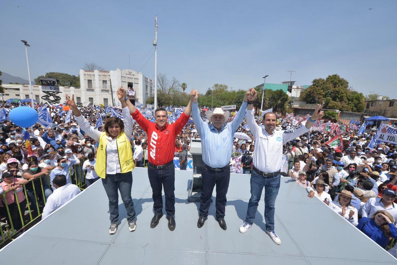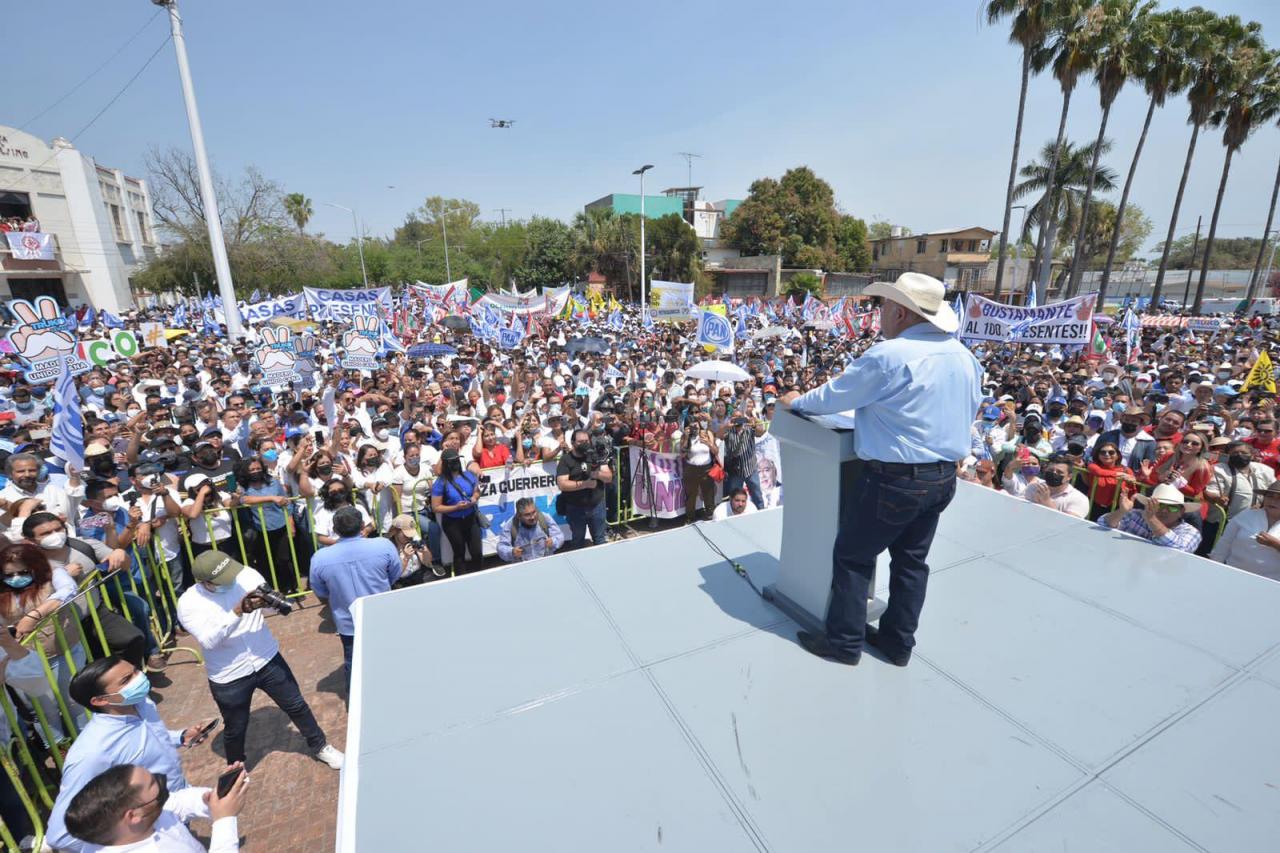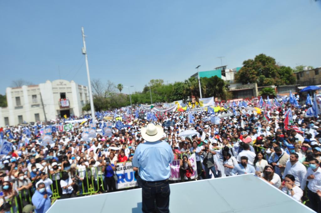 En este contexto las voces de los presentes se unieron en una sola para refrendar: Truko estamos contigo, Truko Gobernador, el pueblo está contigo; una ola humana cobró vida en las calles aledañas del Paseo Méndez, donde el rojo, el azul y el amarillo se mezclaron con el resto de los colores que, ese día, fueron uno para consolidar el propósito de construir un mejor Tamaulipas.