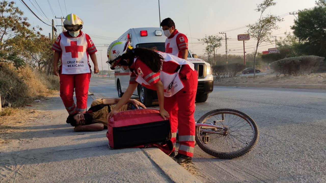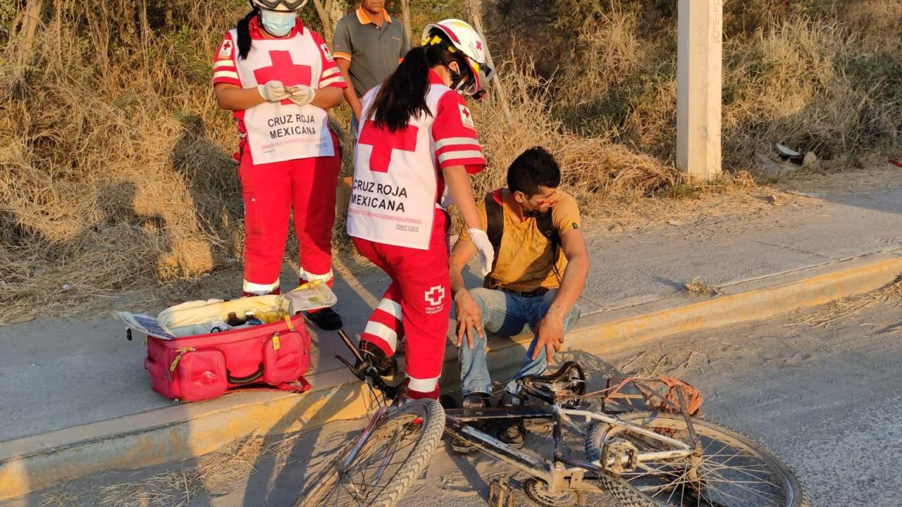 El ciclista permaneció semiinconsciente por espacio de varios minutos hasta la llegada de los paramédicos de Cruz Roja Mexicana.