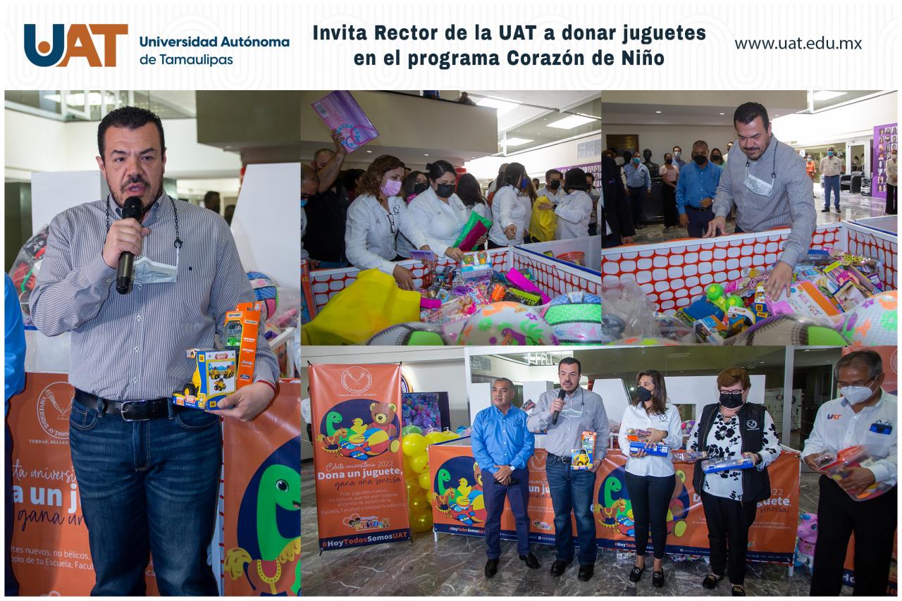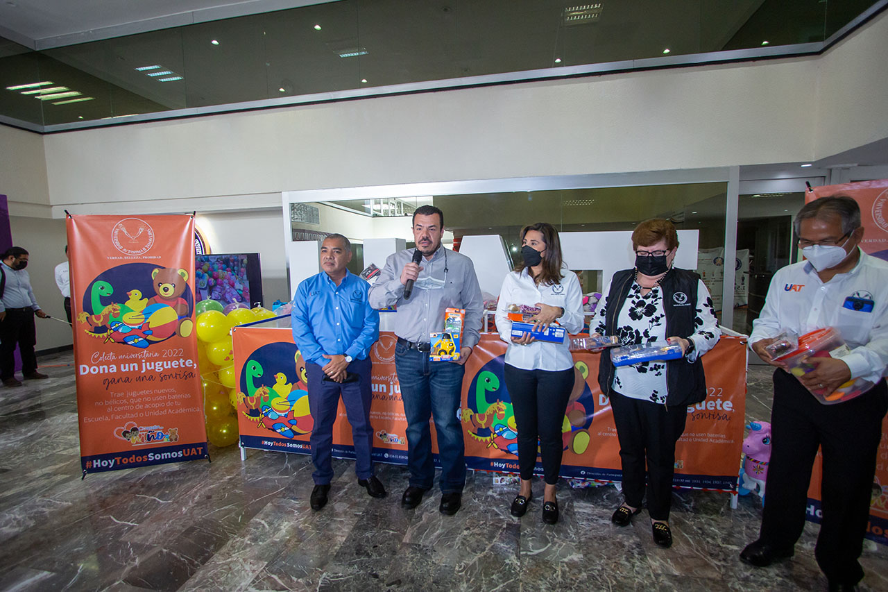 Hizo extensiva la invitación a la comunidad universitaria y a la sociedad en general a continuar participando con la donación de juguetes en los centros de acopio que se han ubicado en las diferentes dependencias, facultades, unidades académicas y escuelas de la UAT en las zonas norte, centro y sur del estado.