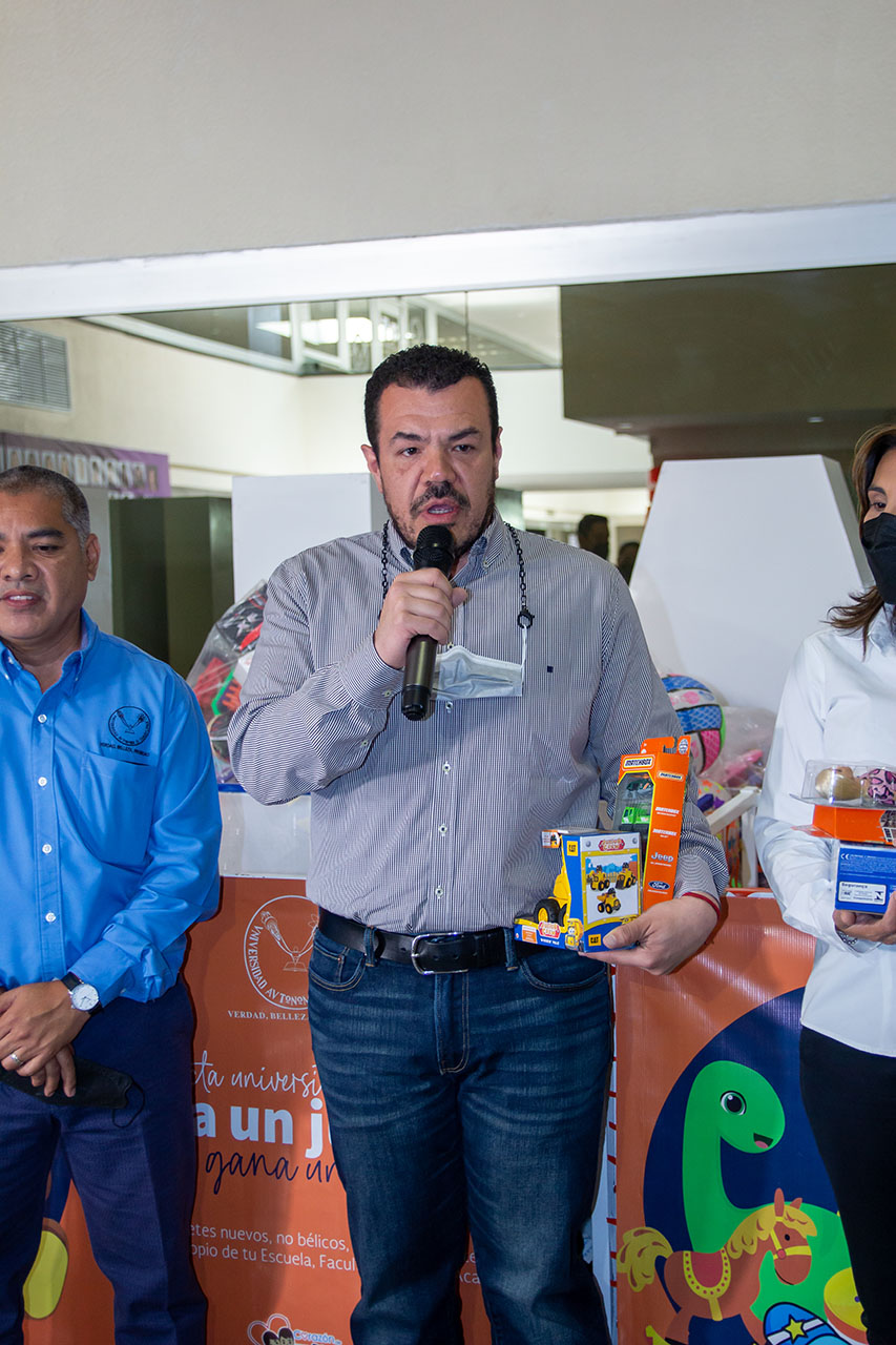 Por su parte, el Arq. Alberto Ángel Trejo Franco, director de Participación Estudiantil, invitó a estudiantes y personal de cada dependencia educativa de la universidad a participar en la organización de los eventos que se estarán realizando durante la entrega de los juguetes recolectados, la cual prevén realizar el 30 de abril de 2022, Día del Niño y la Niña, en el horario y lugar que cada una de las dependencias de la universidad determine en su momento.