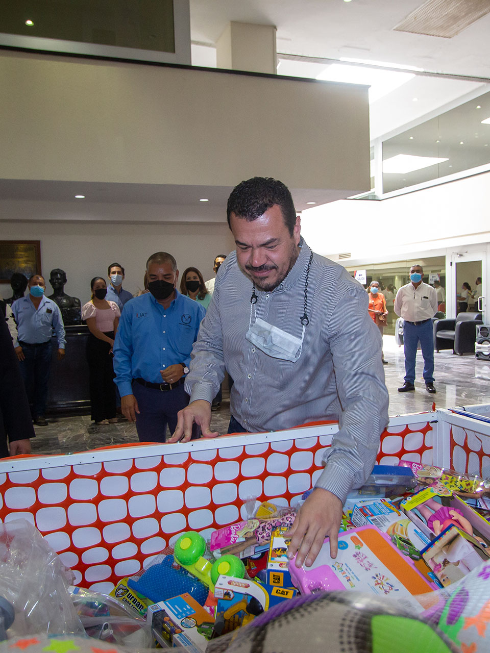 El C.P. Guillermo Mendoza Cavazos, Rector de la Universidad Autónoma de Tamaulipas (UAT), encabezó la entrega de donativos de la comunidad universitaria y representantes de las diversas secretarías, direcciones y dependencias de la casa de estudios, dentro de la colecta del programa Corazón de Niño “Dona un juguete, gana una sonrisa”.