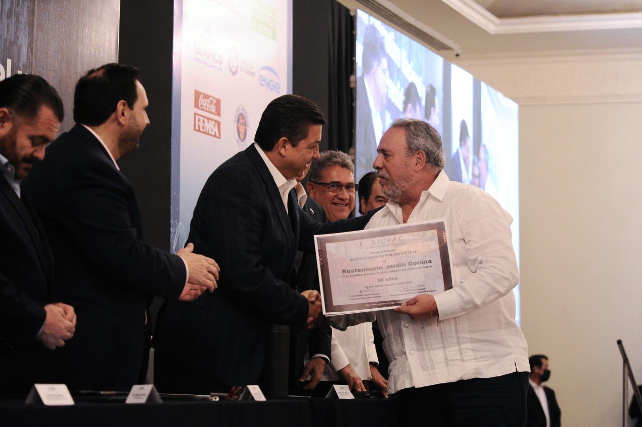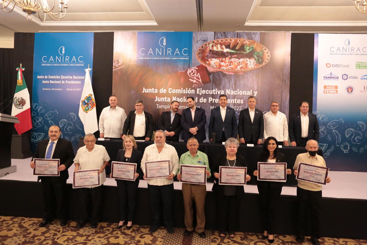 En el marco de esta ceremonia, los integrantes de la Comisión Ejecutiva Nacional CANIRAC, reconocieron a los restauranteros con mayor trayectoria de zona conurbada Altamira, Madero y Tampico.