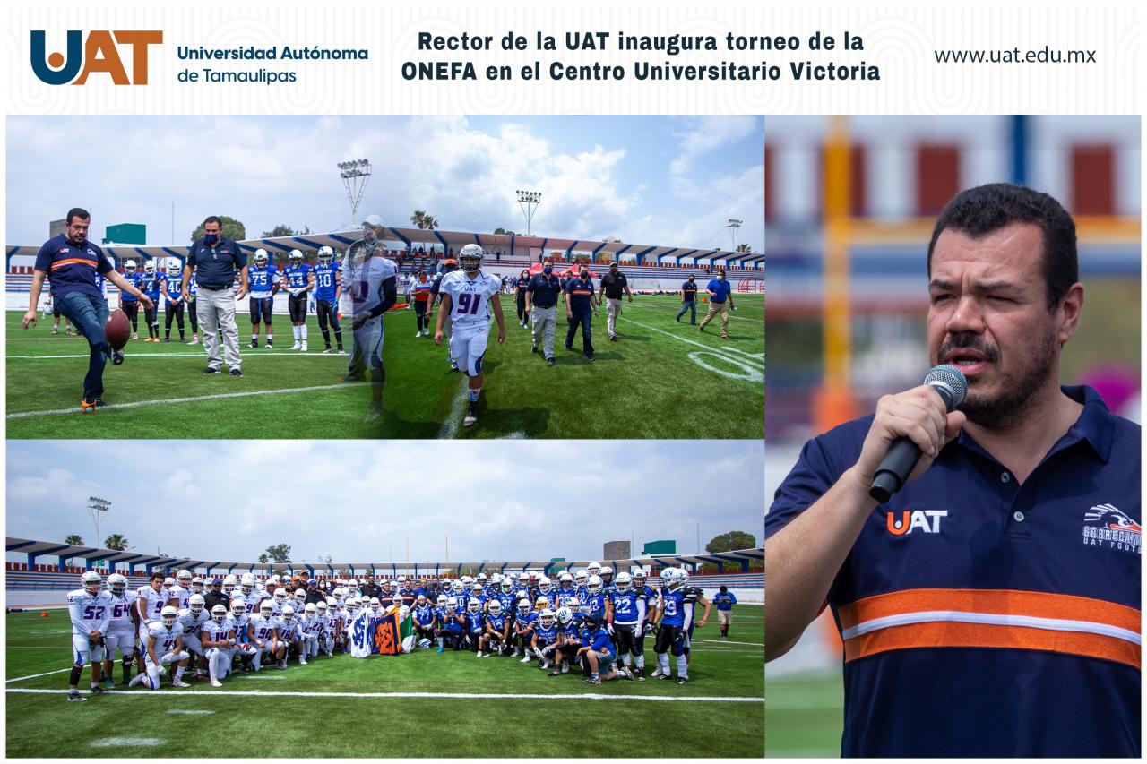 Teniendo como escenario el remodelado Estadio “Eugenio Alvizo Porras” del Centro Universitario Victoria, el C.P. Guillermo Mendoza Cavazos, Rector de la Universidad Autónoma de Tamaulipas (UAT), puso en marcha el torneo 2022 categoría intermedia de la Organización Nacional Estudiantil de Futbol Americano Estudiantil (ONEFA).
