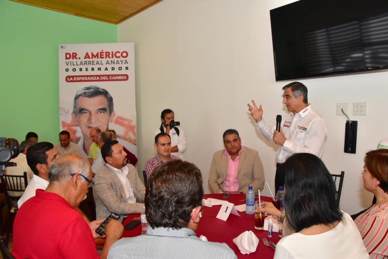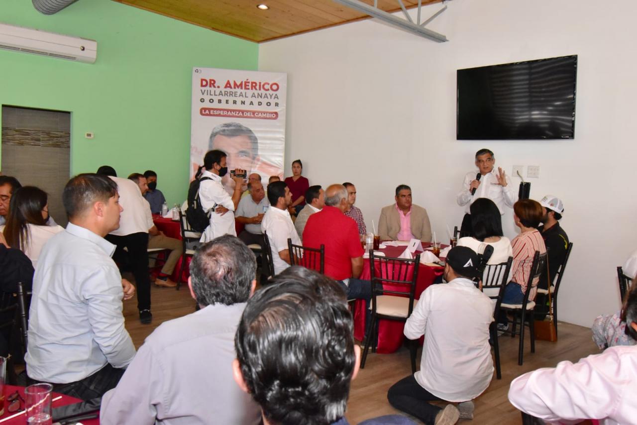 Nuevo Laredo, Tam.-Américo Villarreal Anaya, candidato de "Juntos Hacemos Historia" que conforman Morena-PT y Verde Ecologista convocó a ingenieros y constructores de esta frontera a sumarse al crecimiento y construcción de un nuevo Tamaulipas.