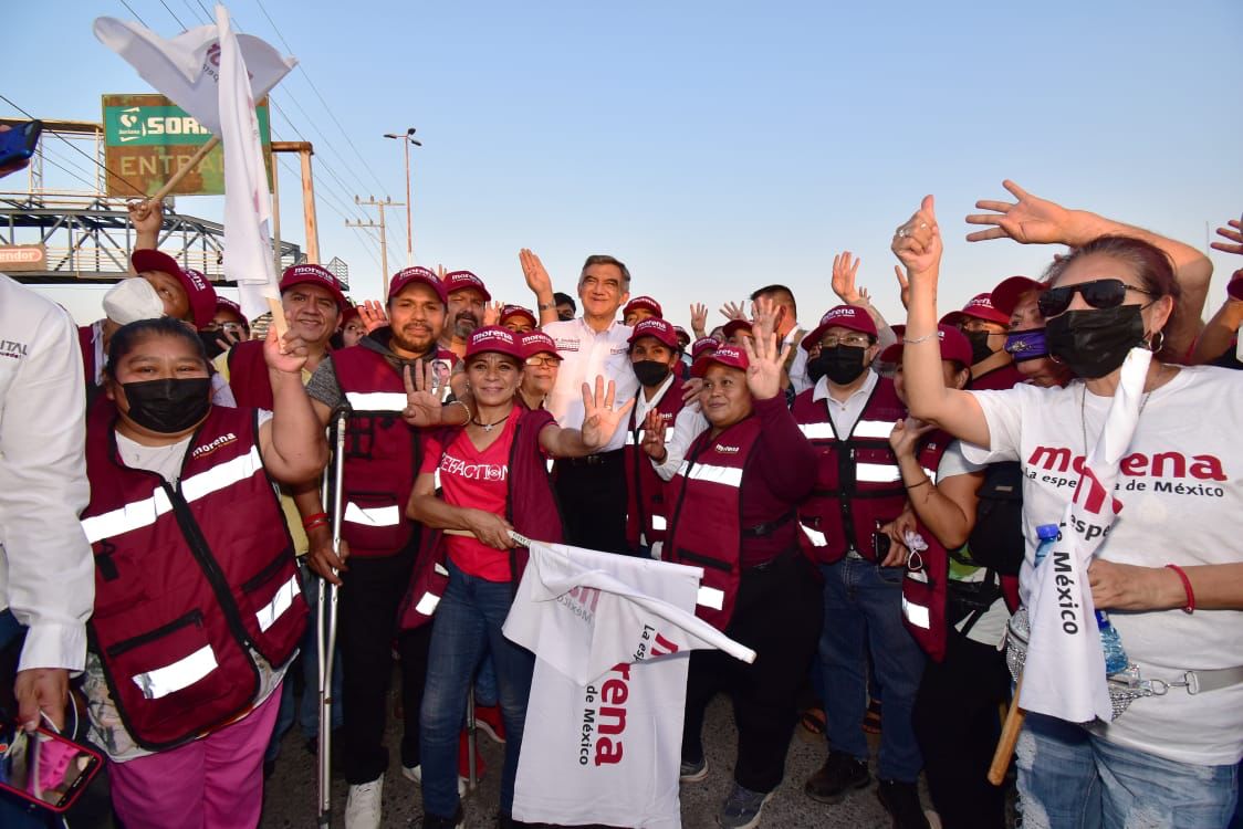 Posterior a ello, el doctor Américo Villarreal se reunió con maquiladores de Nuevo Laredo y, después llevó a cabo el primer pegoteo de calcomanías justo en la colonia Américo Villarreal en el crucero de las calles Calzada de los Héroes y Eva Sámano donde confluyen diversas colonias como la antes mencionada, la Voluntad y Trabajo 1 y 2, La Fe, Las Sandías, Torres, J. Longoria, entre otras.