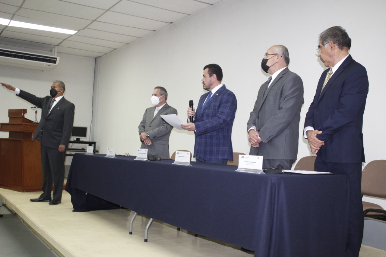 En la ceremonia solemne del órgano colegiado estuvo presente el C. P. Guillermo Mendoza Cavazos, Rector de la UAT, quien le tomó la protesta al Director electo de esta institución académica ubicada en el Centro Universitario Sur (Campus Tampico).
