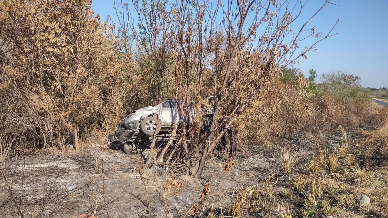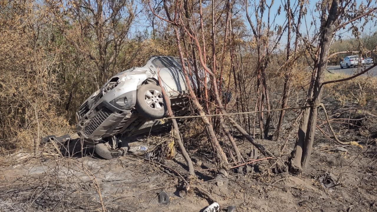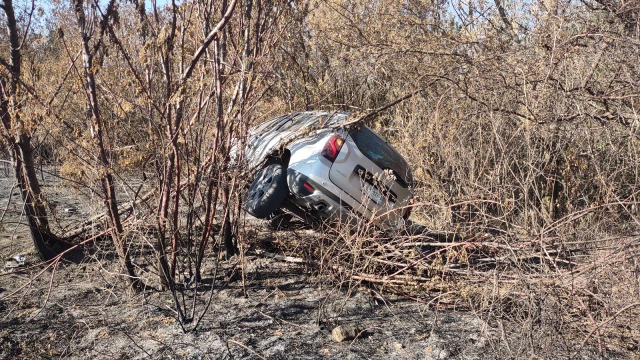 En su posición final la camioneta quedó completamente destrozada entre unos matorrales a un costado del camino.