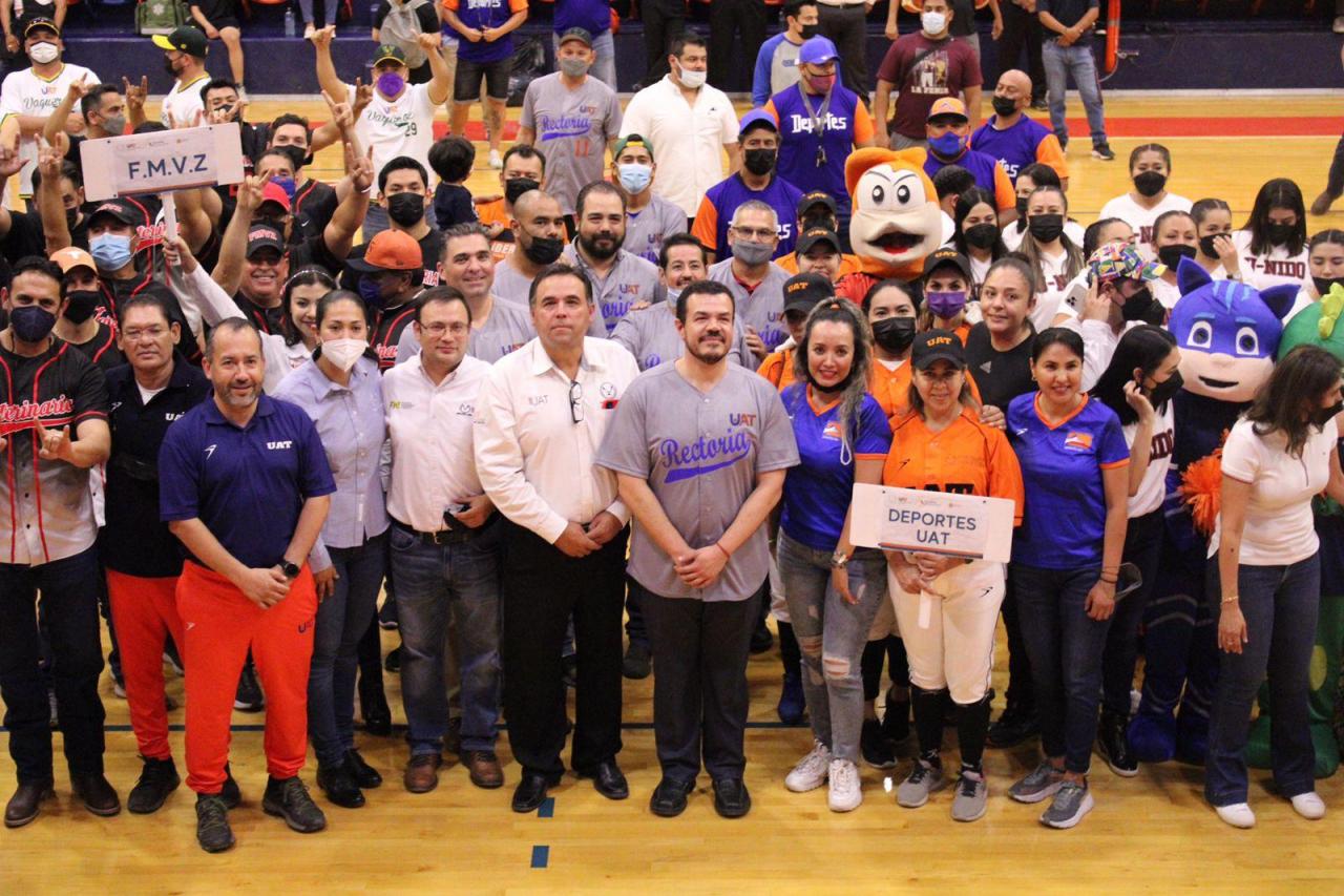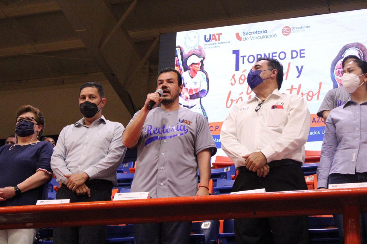 Victoria, Tamaulipas.- En un evento sin precedentes, el Rector de la Universidad Autónoma de Tamaulipas, C.P. Guillermo Mendoza Cavazos, inauguró los Torneos de Softbol y Baloncesto, ambas ramas, para Funcionarios Maestros y Empleados, sindicalizados y de confianza de la UAT.