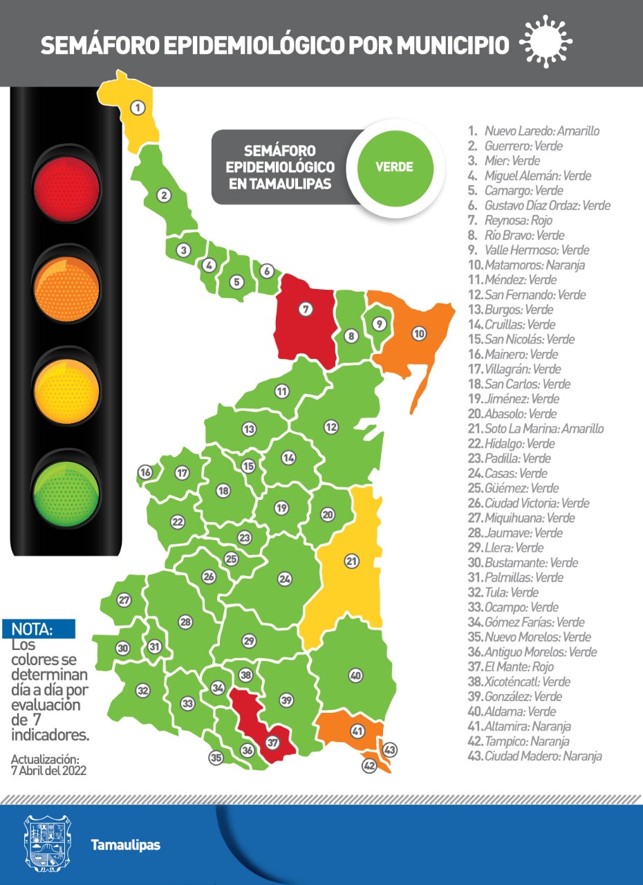 La dependencia aseguró que el fortalecimiento de las medidas emitidas por el Gobierno de Tamaulipas, el avance del Plan Estatal de Vacunación y la sensibilización social, han sido determinantes para reducir el impacto de la cuarta ola de contagios, aunque pidió no bajar la guardia por la cercanía del periodo vacacional de Semana Mayor 2022.