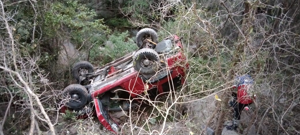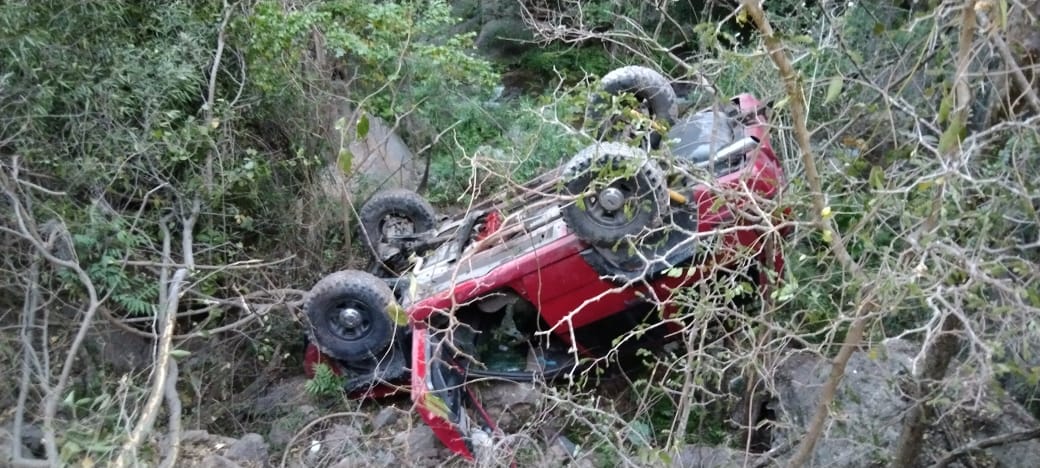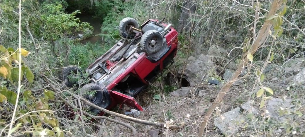Al ser impactada la camioneta Silverado salió proyectada quedando sobre el camino de terracería, mientras que la Cherokee abandonó el camino para caer a un barranco.