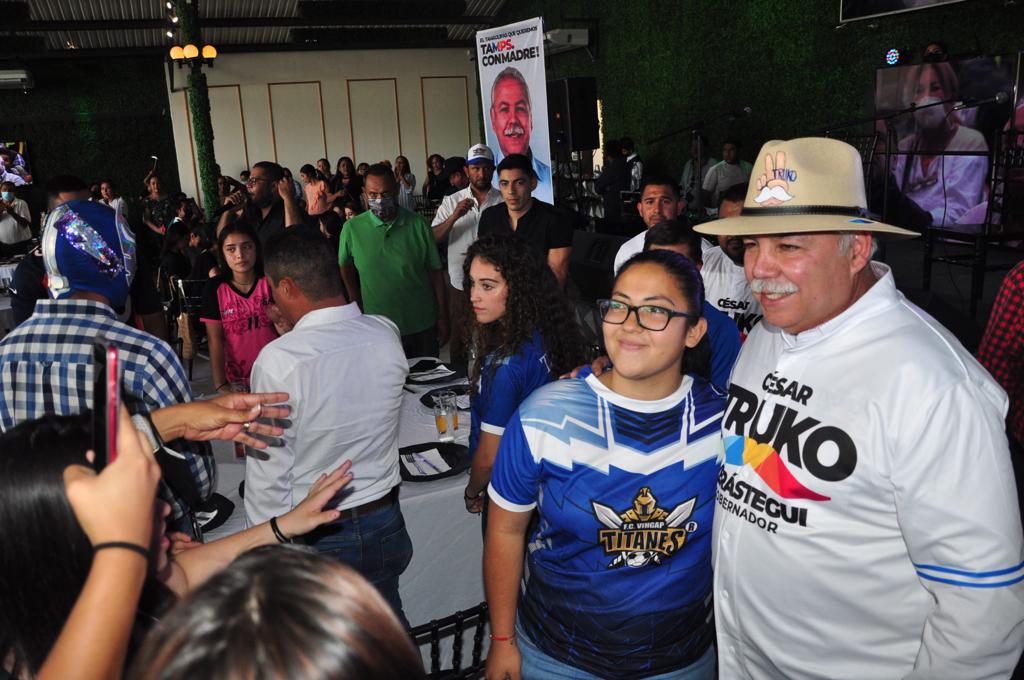 Ciudad Victoria, Tam.- Al reunirse con deportistas de diferentes categorías, César Truko Verástegui, candidato a gobernador por la alianza “Va por Tamaulipas”, les habló de la importancia de organizarse para generar convenios entre ellos, el municipio y el estado que marquen las reglas para el pleno desarrollo de las disciplinas deportivas.