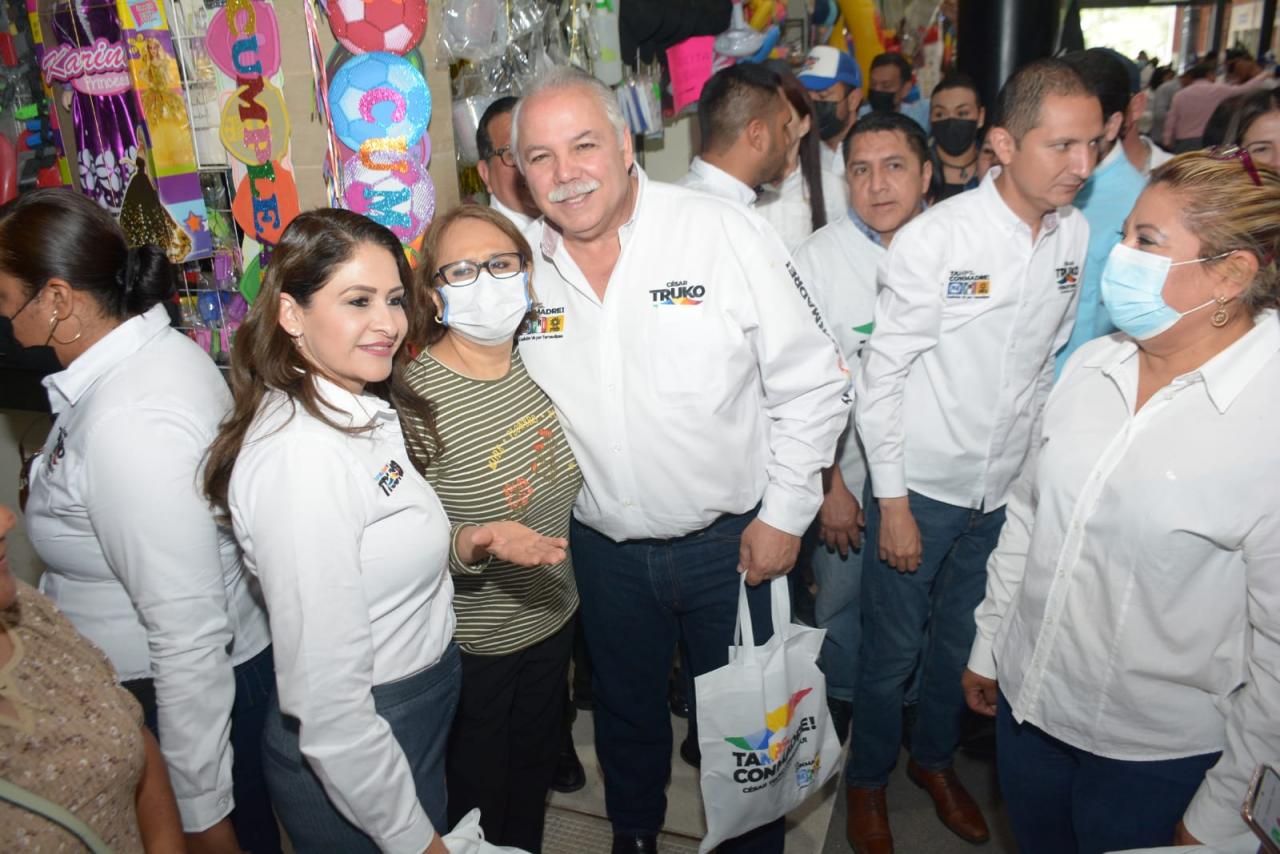 TAMPICO, Tam.- Comerciantes locatarios de la zona de Mercados de Tampico expresaron la tranquilidad de contar con un candidato como César “El Truko” Verástegui, que desde sus anteriores cargos siempre ha tenido las puertas abiertas y ha trabajado en la seguridad y el apoyo a la economía local de Tamaulipas.