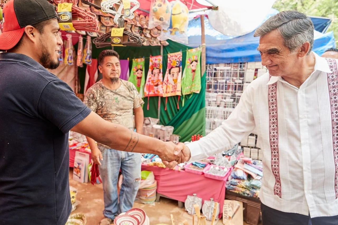 El Chorrito, Municipio de Hidalgo.-Entre gritos de ¡gobernador! y muestras de apoyo de los paseantes, el doctor Américo Villarreal, candidato común a la gubernatura por Morena, PVEM y PT, visitó este centro de recreo que reúne cada año a miles de turistas del Estado.