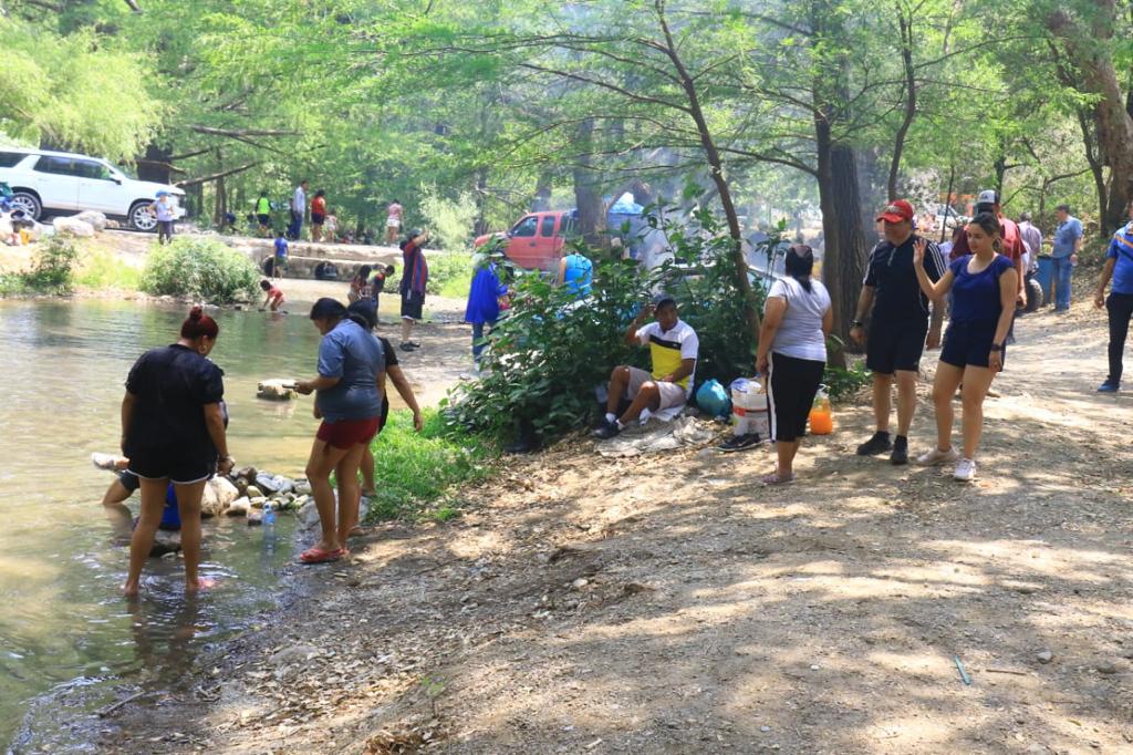 Posteriormente recorrió la margen del río donde saludó y conversó con integrantes de las familias que instalaron su campamento provisional para disfrutar del agua, la naturaleza y variedad gastronómica de los comerciantes de la comunidad ejidal.